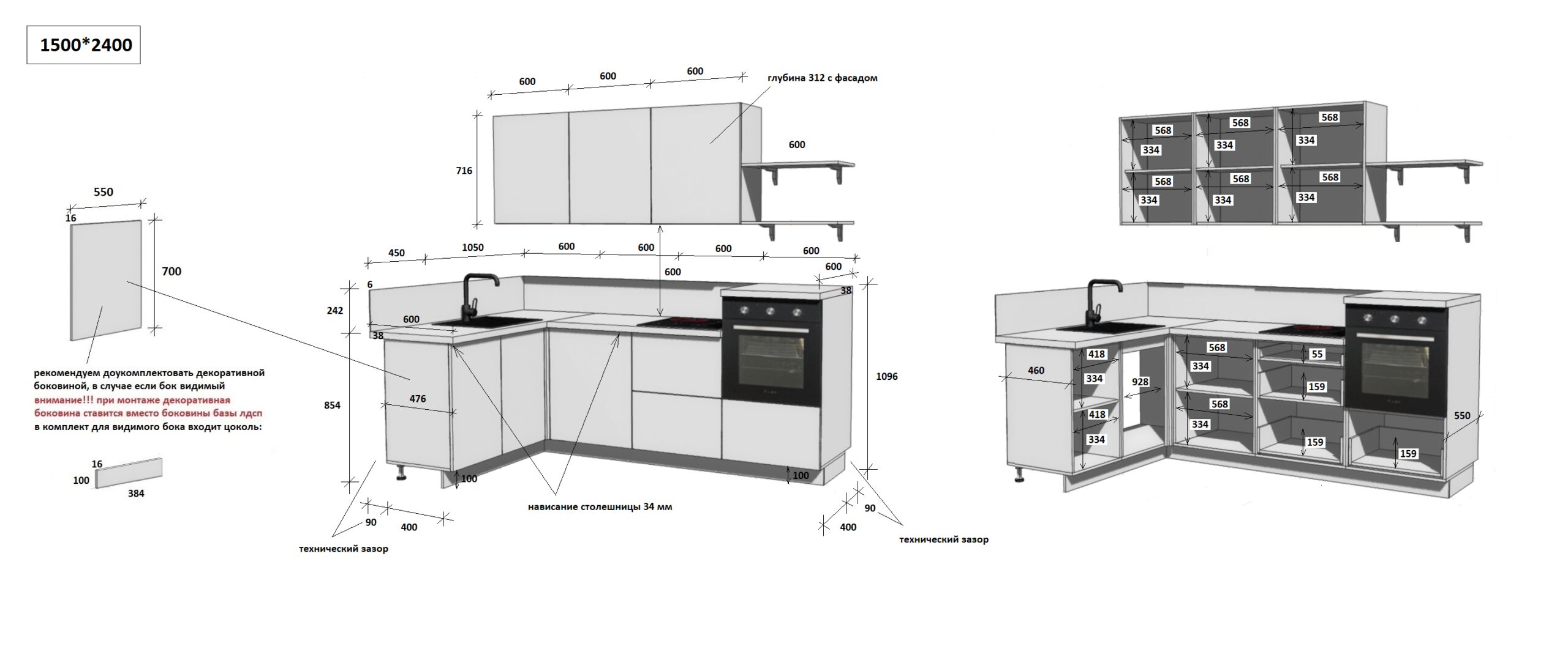 — Цельная столешница: без стыков и зазоров — больше гигиеничности и удобства в уборке.