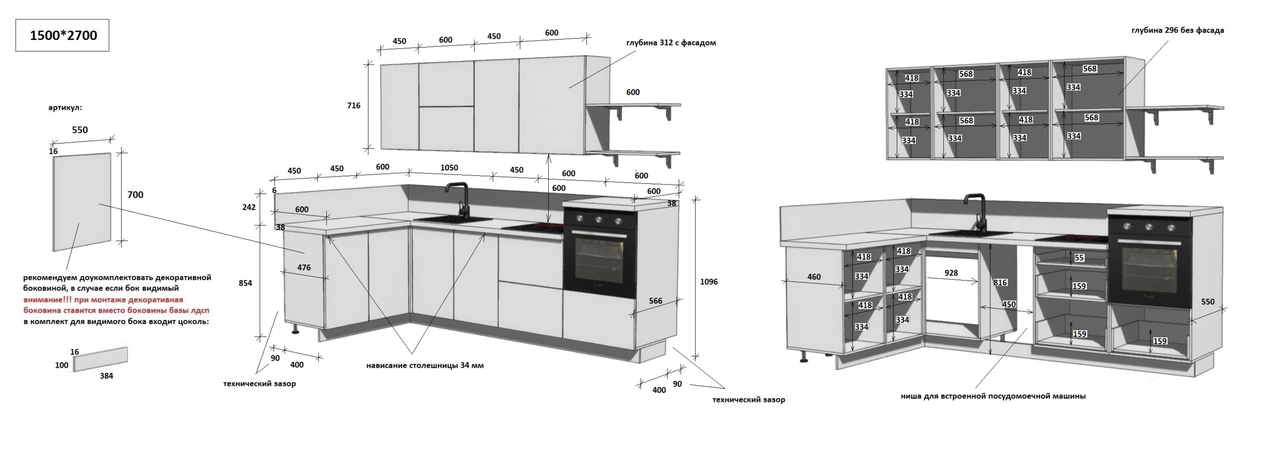 — Цельная столешница: без стыков и зазоров — больше гигиеничности и удобства в уборке.