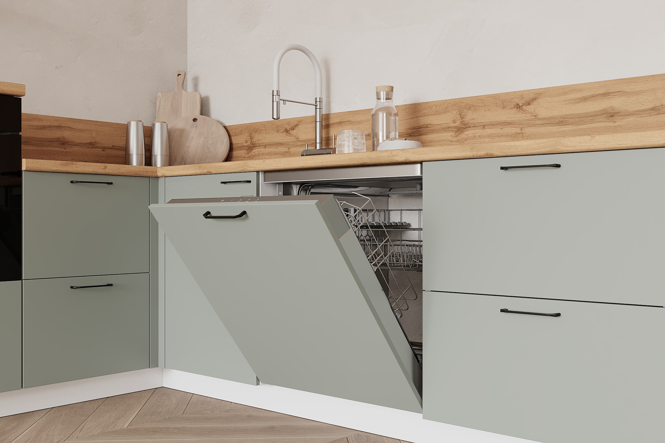 — Цельная столешница: без стыков и зазоров — больше гигиеничности и удобства в уборке.