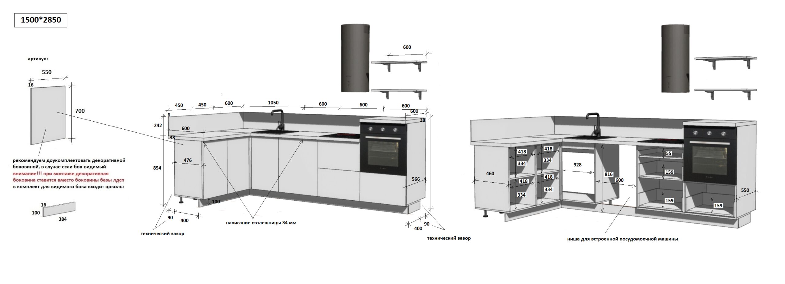 — Цельная столешница: без стыков и зазоров — больше гигиеничности и удобства в уборке.
