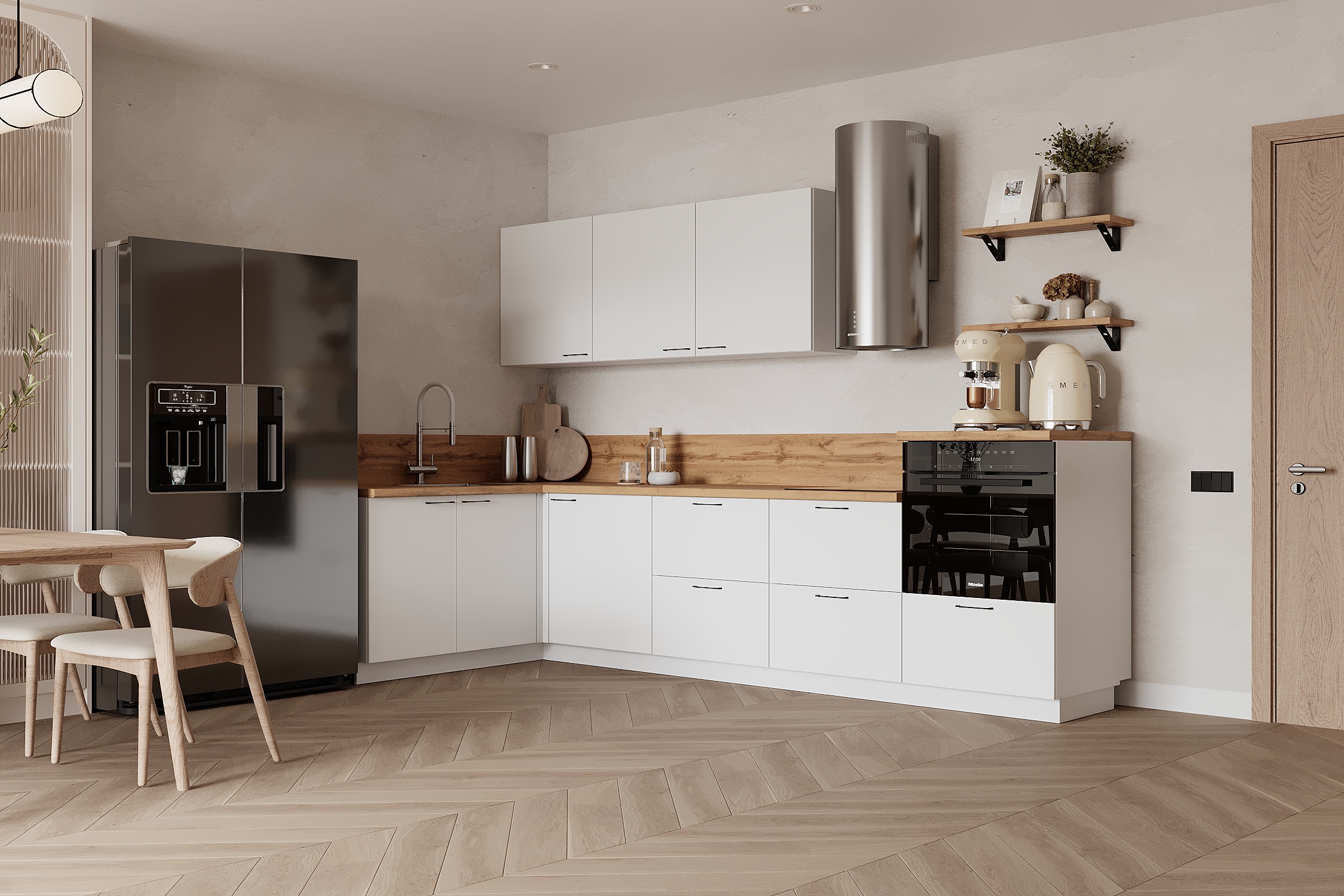 Кухня «Лизет» сочетает петербургскую элегантность и современную функциональность. Вдохновлённая эпохой Петра I и архитектурой Петербурга, она объединяет благородные цвета, тёплую древесную текстуру и лаконичные линии — для создания уютной и гармоничной кухни.