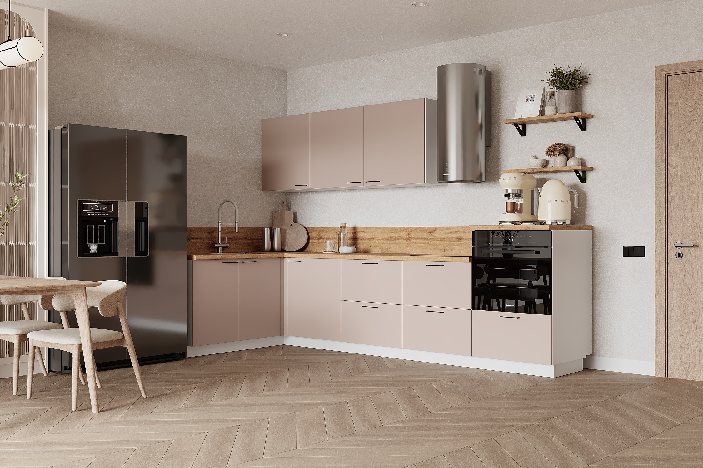 Кухня «Лизет» сочетает петербургскую элегантность и современную функциональность. Вдохновлённая эпохой Петра I и архитектурой Петербурга, она объединяет благородные цвета, тёплую древесную текстуру и лаконичные линии — для создания уютной и гармоничной кухни.