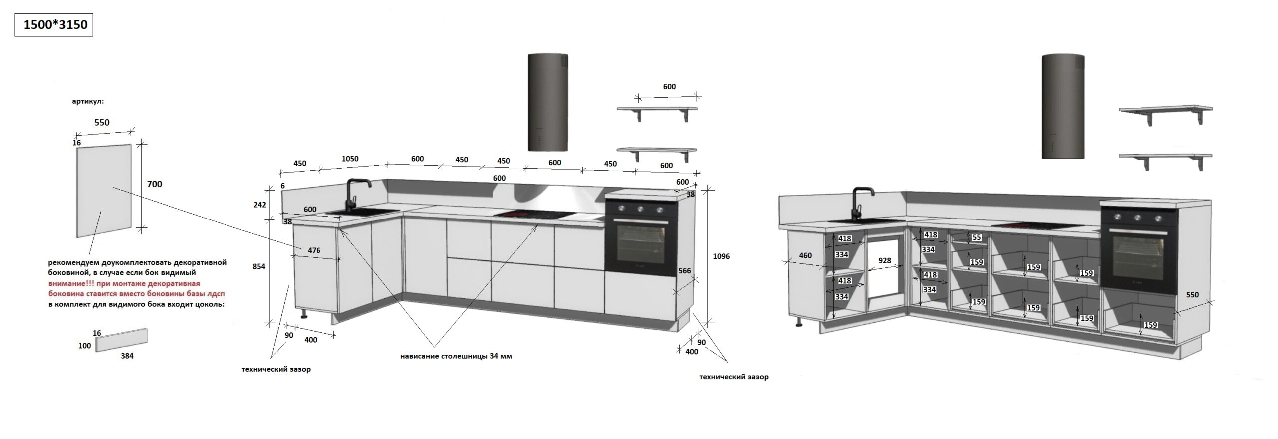 КГ Угловой 1500х3150 (без пм) , Магнолия Арника РМ в.3 - Фирменный интернет-магазин мебели «Арника»
