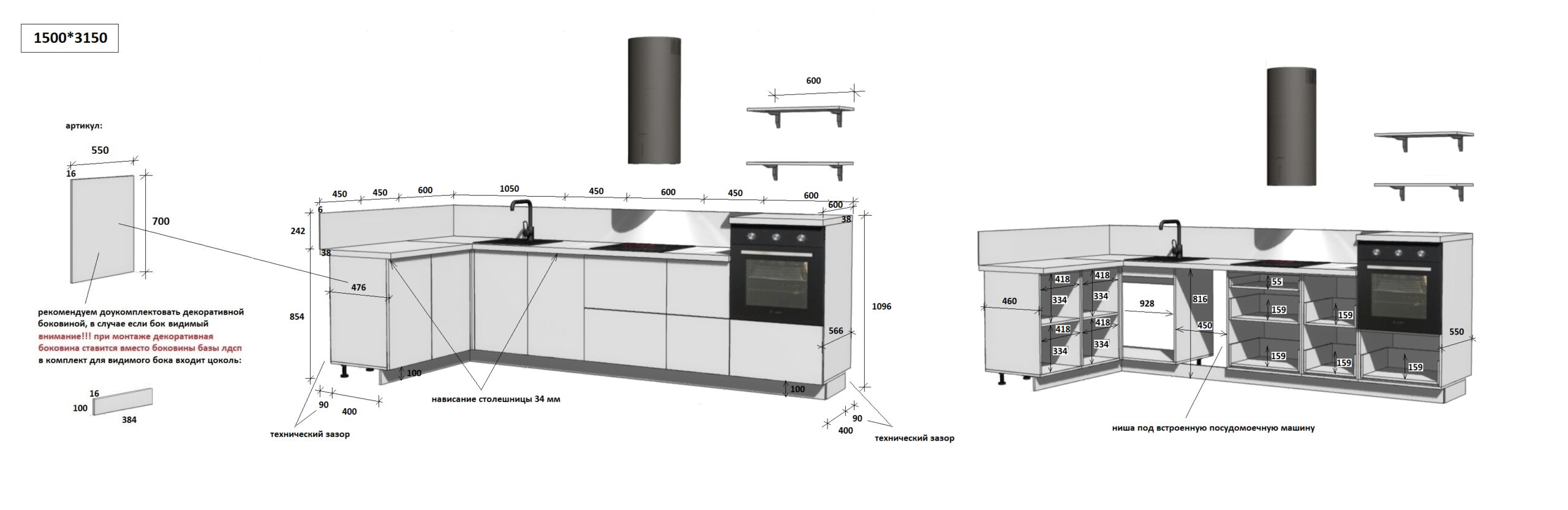 КГ Угловой 1500х3150 (с пм) Эмаль, Белый Арника РМ в.6 - Фирменный интернет-магазин мебели «Арника»