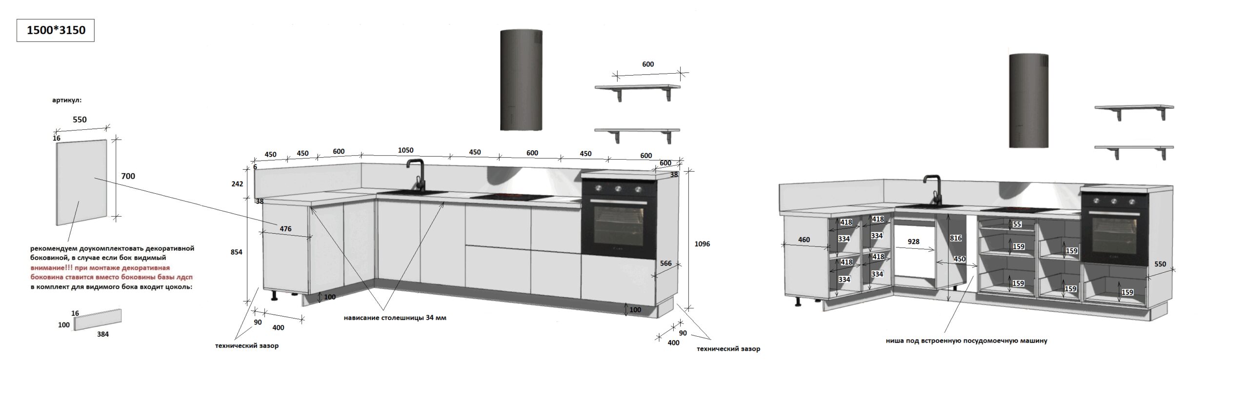 КГ Угловой 1500х3150 (с пм) Эмаль, Крем Арника РМ в.6