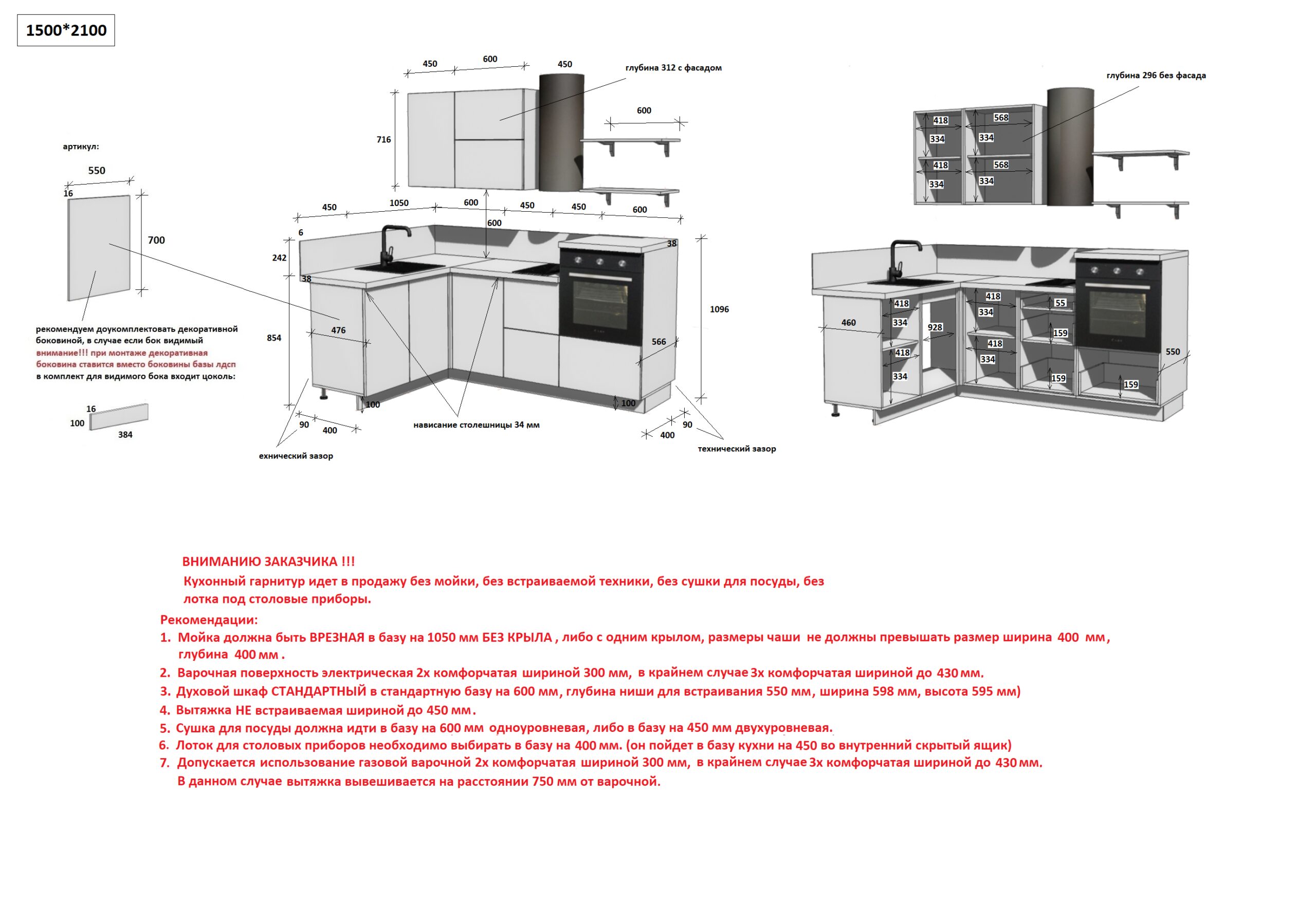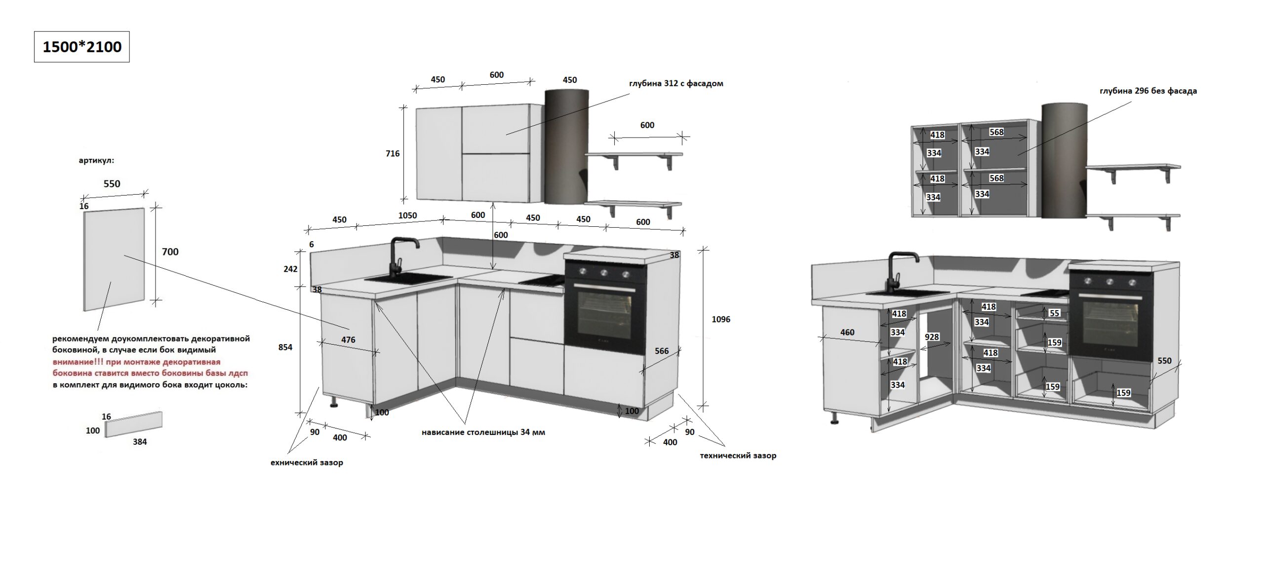 — Цельная столешница: без стыков и зазоров — больше гигиеничности и удобства в уборке.