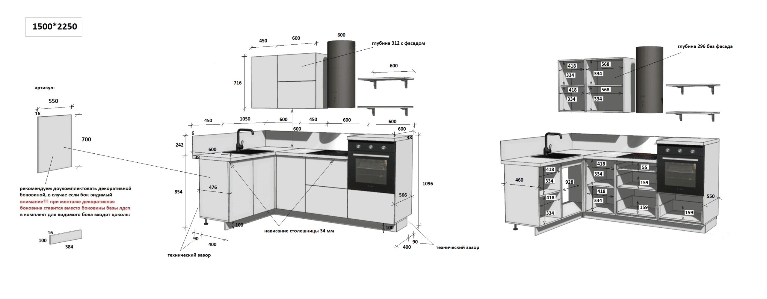 — Цельная столешница: без стыков и зазоров — больше гигиеничности и удобства в уборке.