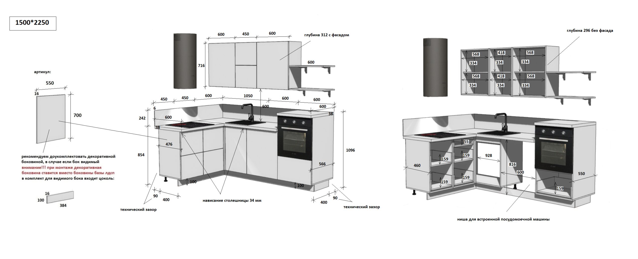 — Цельная столешница: без стыков и зазоров — больше гигиеничности и удобства в уборке.