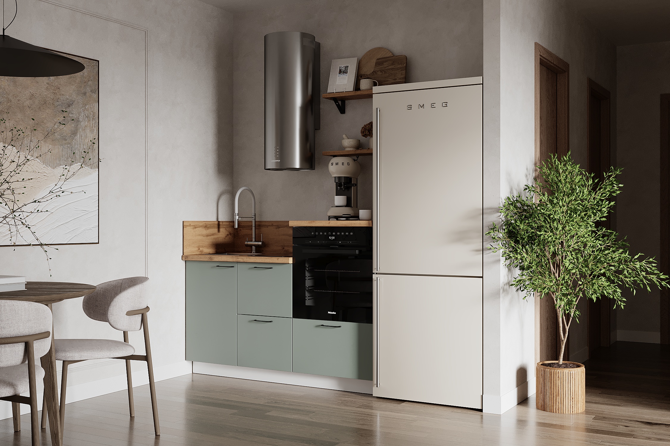 — Эстетика и зонирование: высокий модуль для духового шкафа делает интерьер аккуратным и современным.