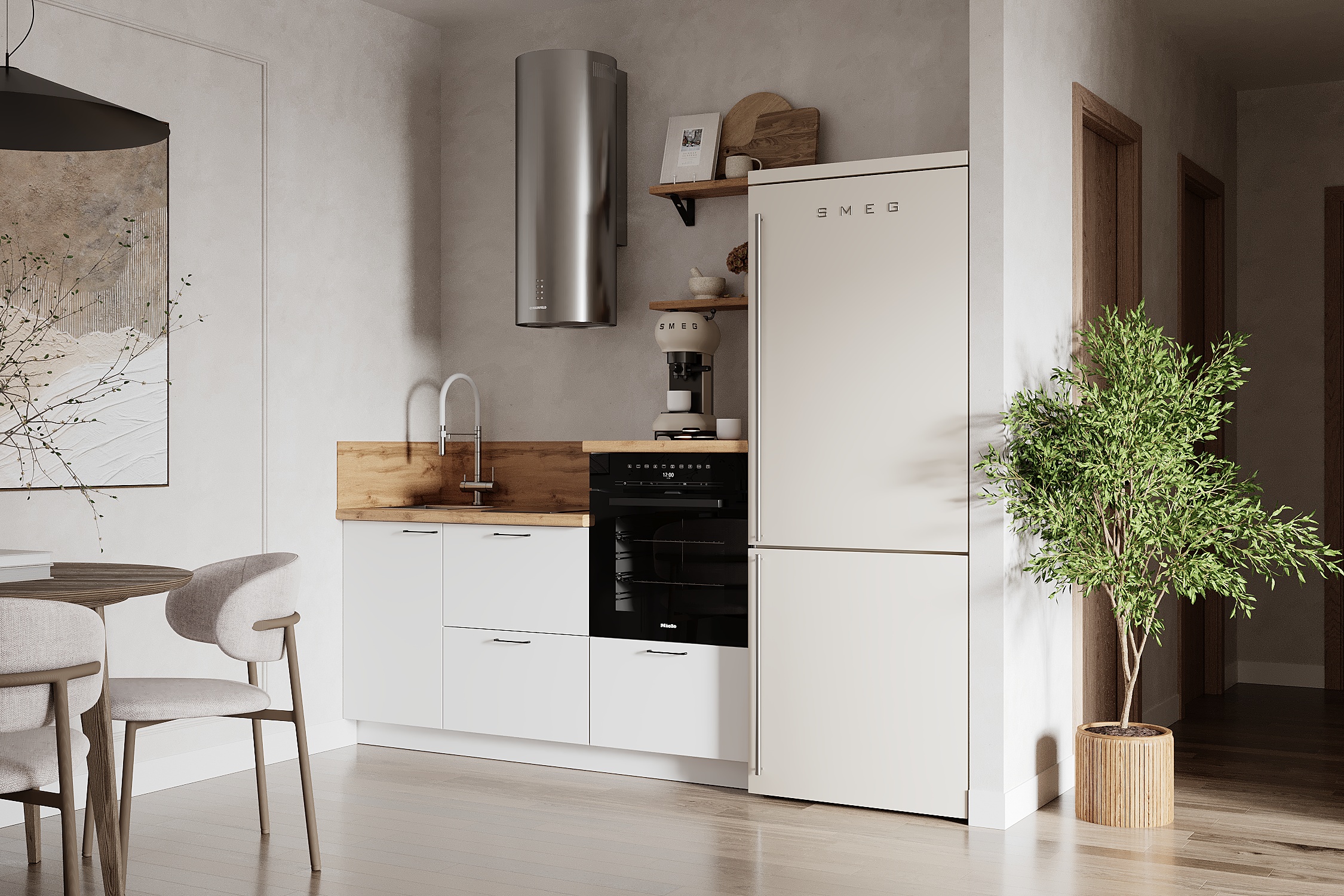— Эстетика и зонирование: высокий модуль для духового шкафа делает интерьер аккуратным и современным.