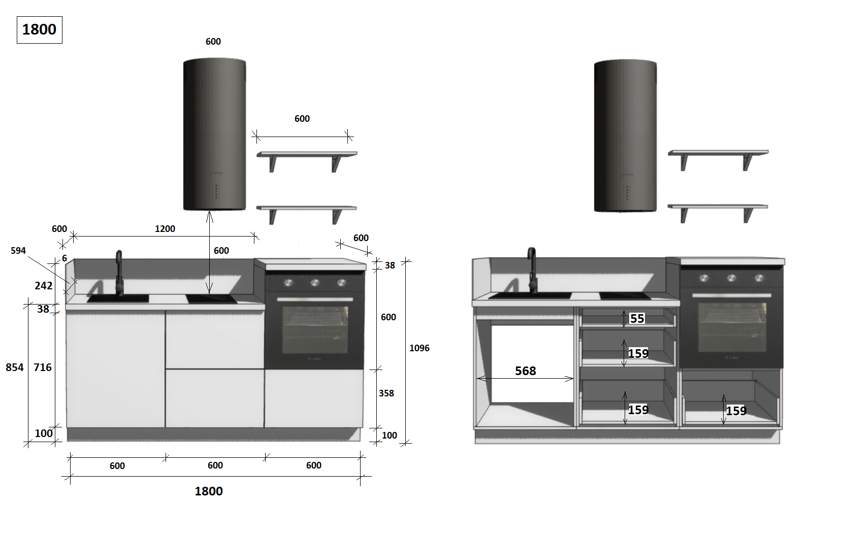 — Цельная столешница: без стыков и зазоров — больше гигиеничности и удобства в уборке.
