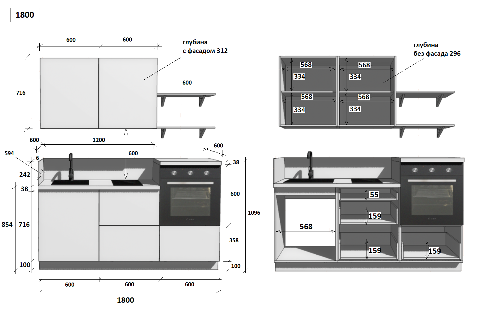 — Цельная столешница: без стыков и зазоров — больше гигиеничности и удобства в уборке.