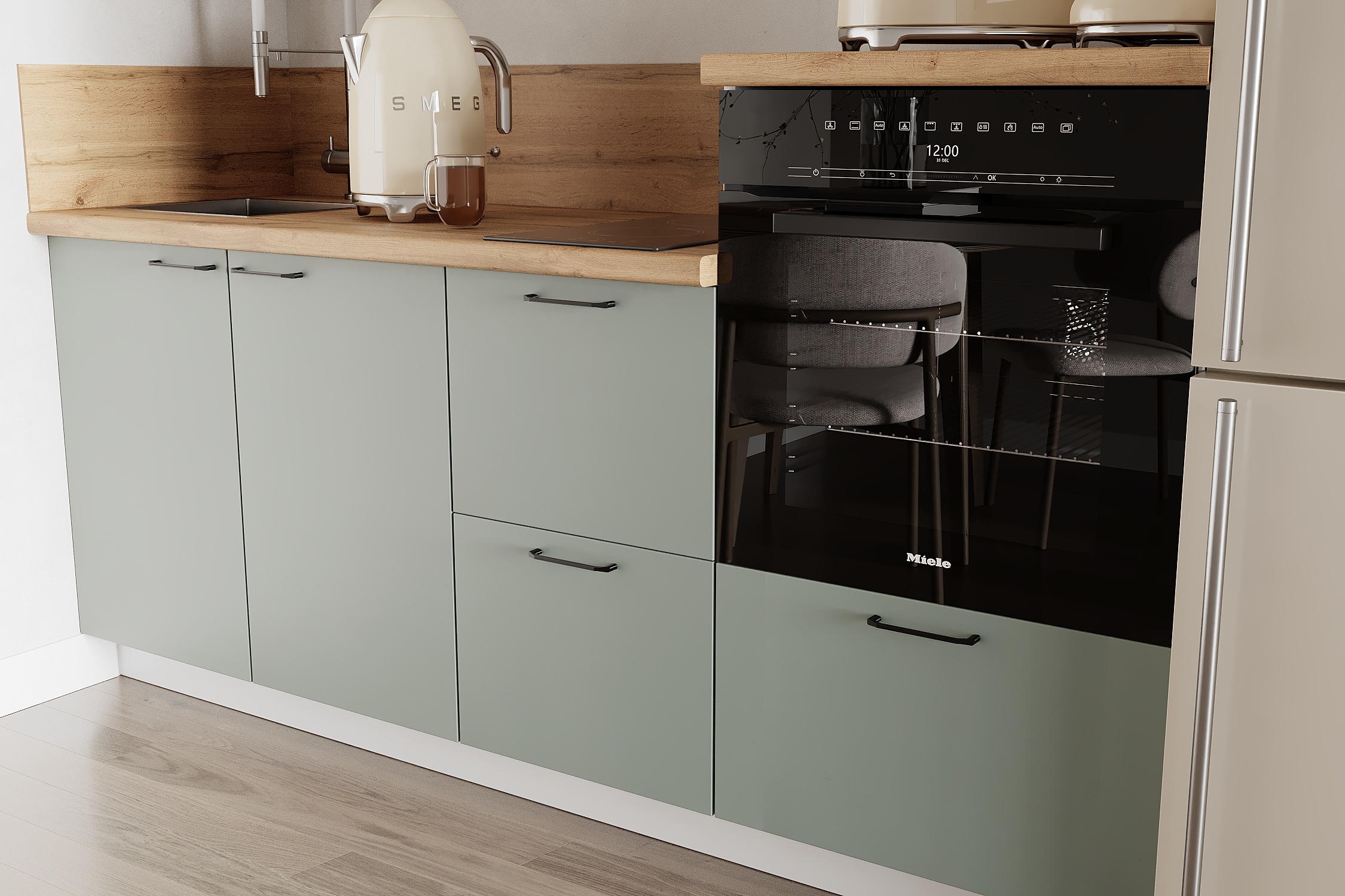 Кухня «Лизет» сочетает петербургскую элегантность и современную функциональность. Вдохновлённая эпохой Петра I и архитектурой Петербурга, она объединяет благородные цвета, тёплую древесную текстуру и лаконичные линии — для создания уютной и гармоничной кухни.