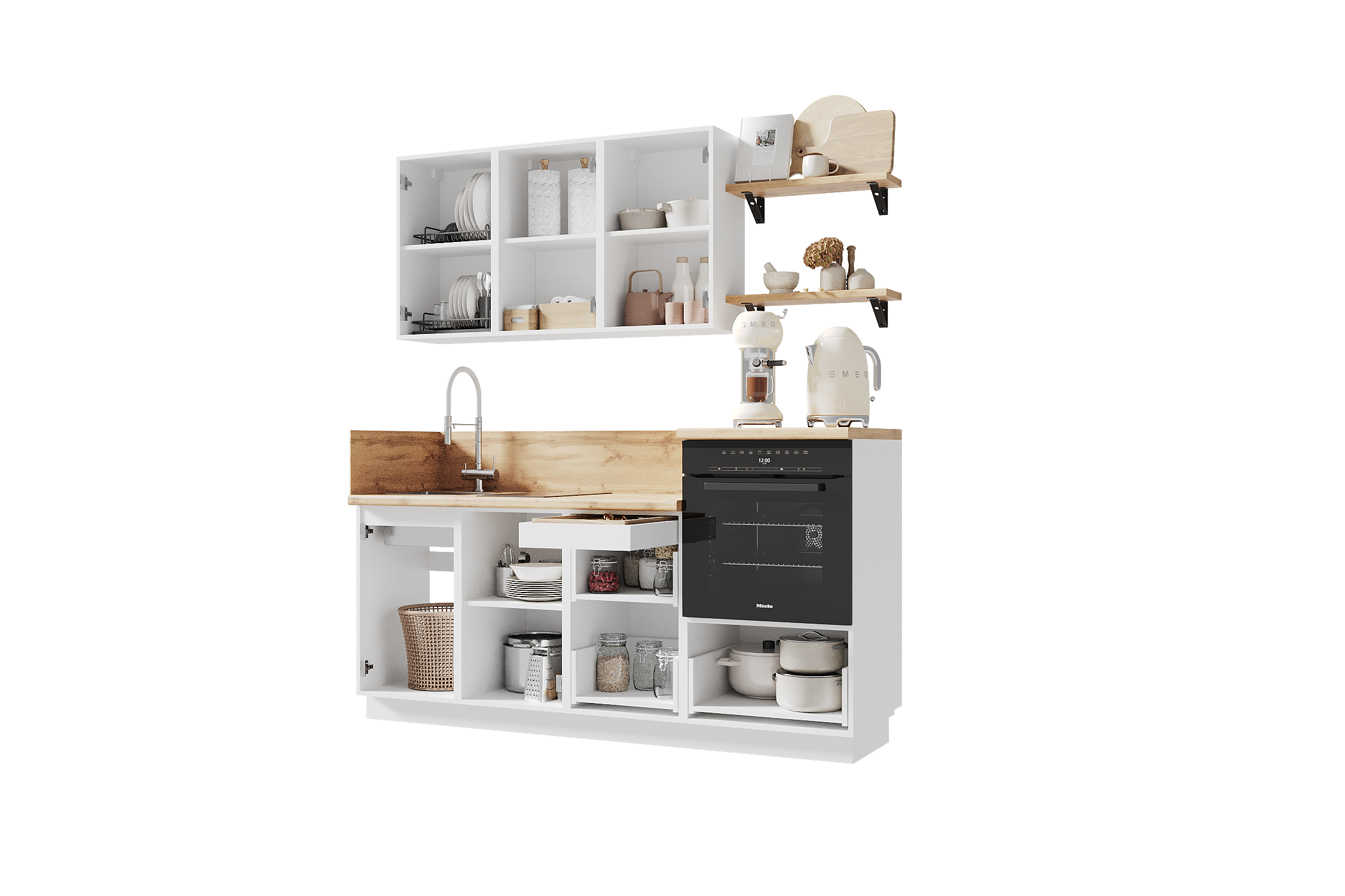 — Эстетика и зонирование: высокий модуль для духового шкафа делает интерьер аккуратным и современным.