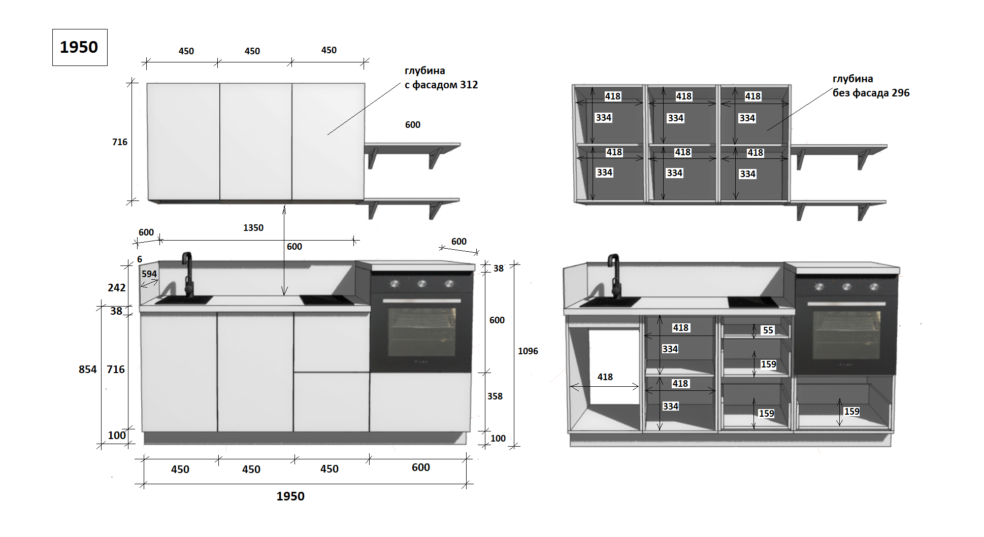 — Цельная столешница: без стыков и зазоров — больше гигиеничности и удобства в уборке.