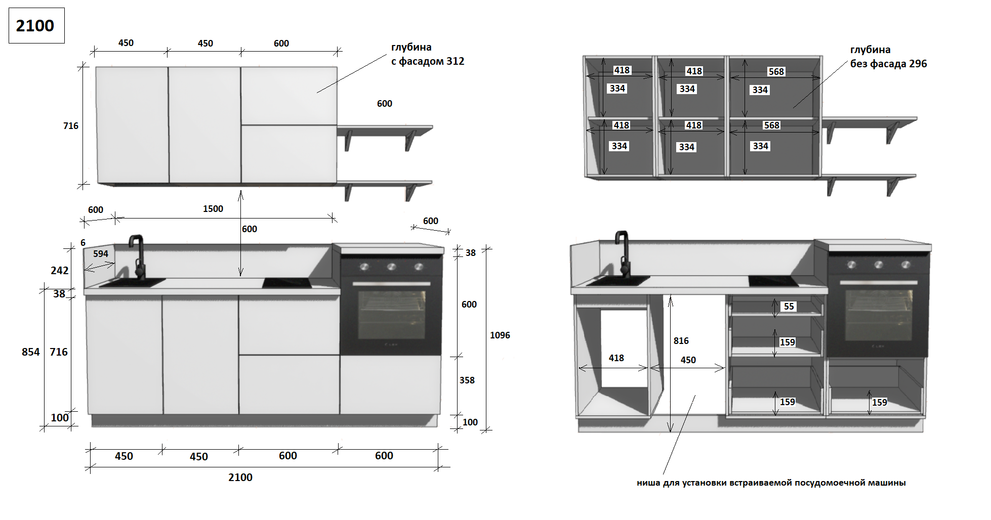 — Цельная столешница: без стыков и зазоров — больше гигиеничности и удобства в уборке.