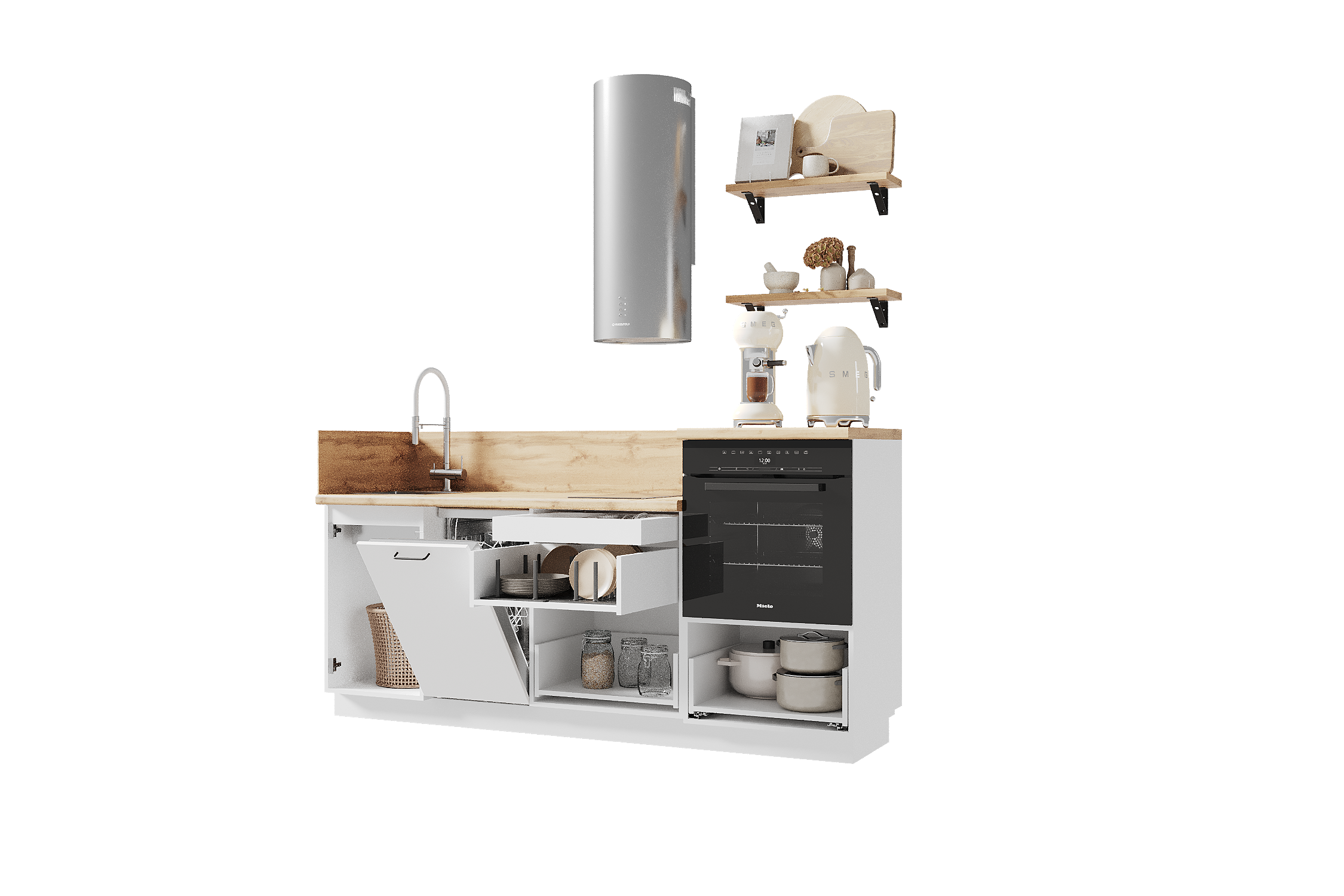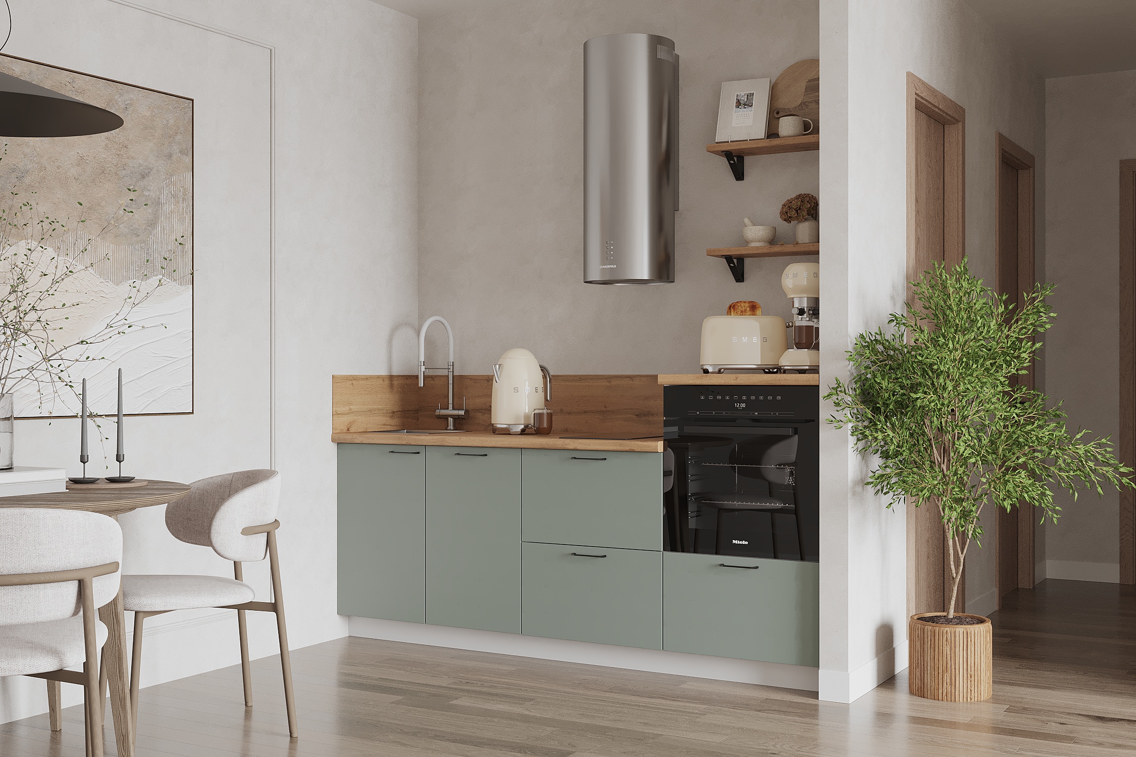 — Эстетика и зонирование: высокий модуль для духового шкафа делает интерьер аккуратным и современным.