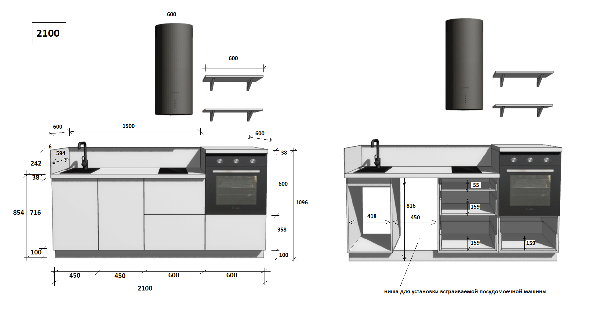 — Цельная столешница: без стыков и зазоров — больше гигиеничности и удобства в уборке.