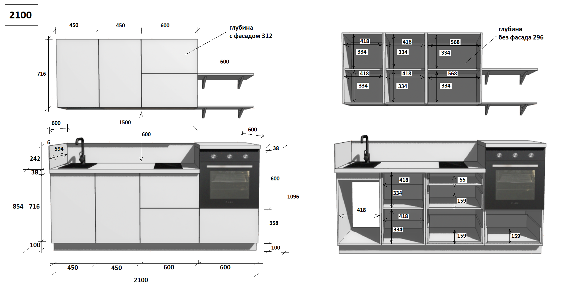 — Цельная столешница: без стыков и зазоров — больше гигиеничности и удобства в уборке.