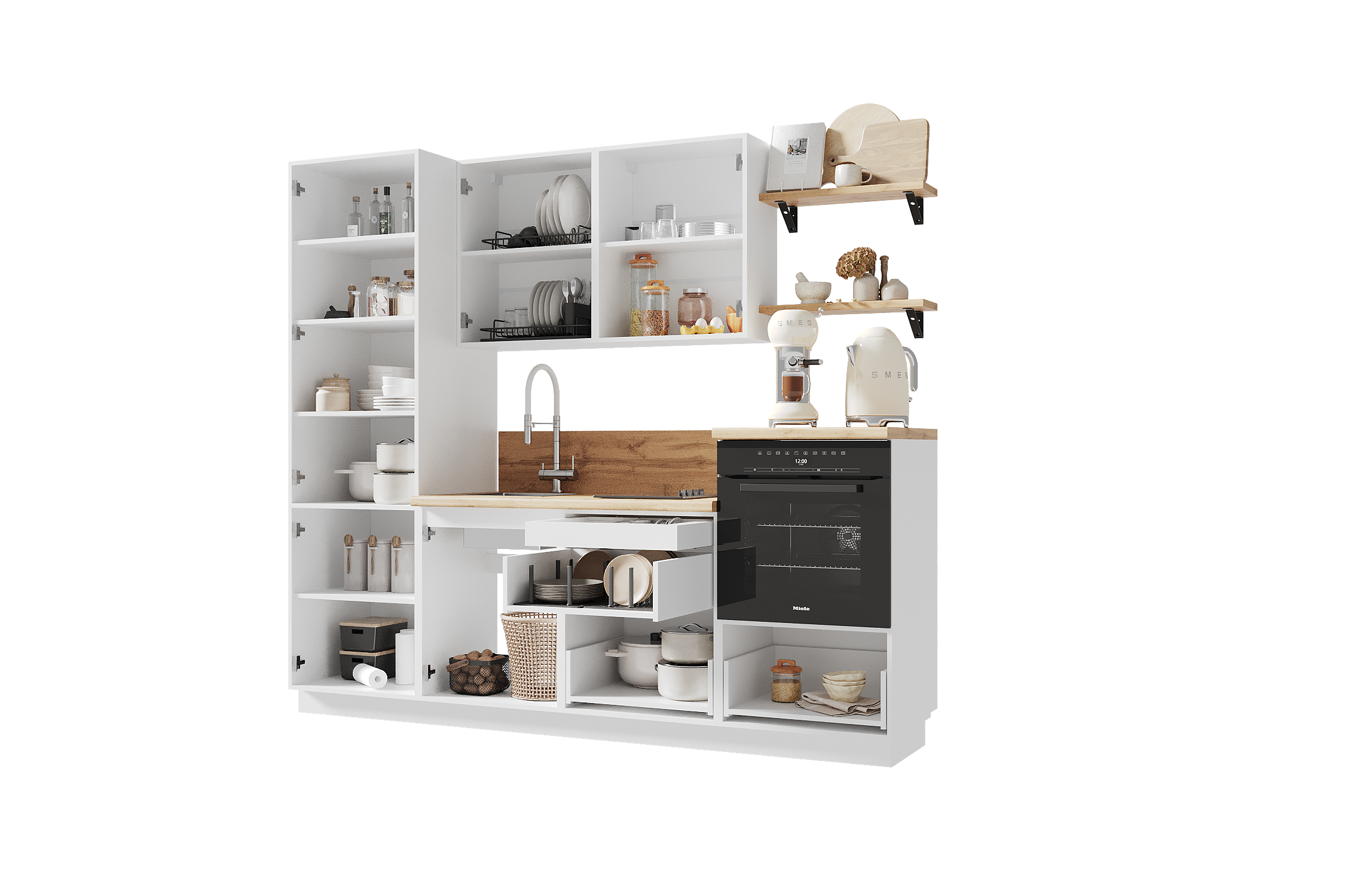 — Эстетика и зонирование: высокий модуль для духового шкафа делает интерьер аккуратным и современным.
