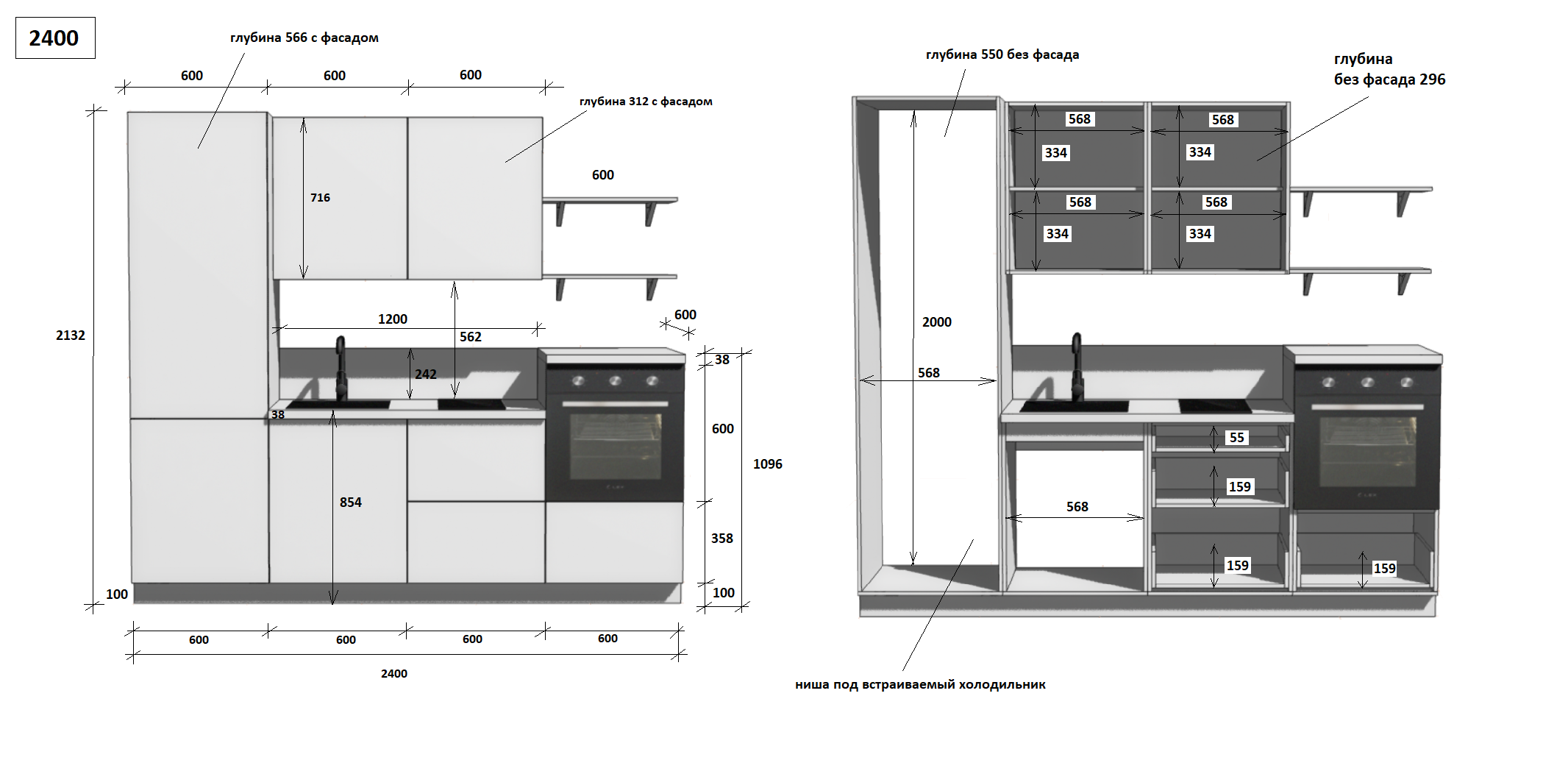 — Цельная столешница: без стыков и зазоров — больше гигиеничности и удобства в уборке.
