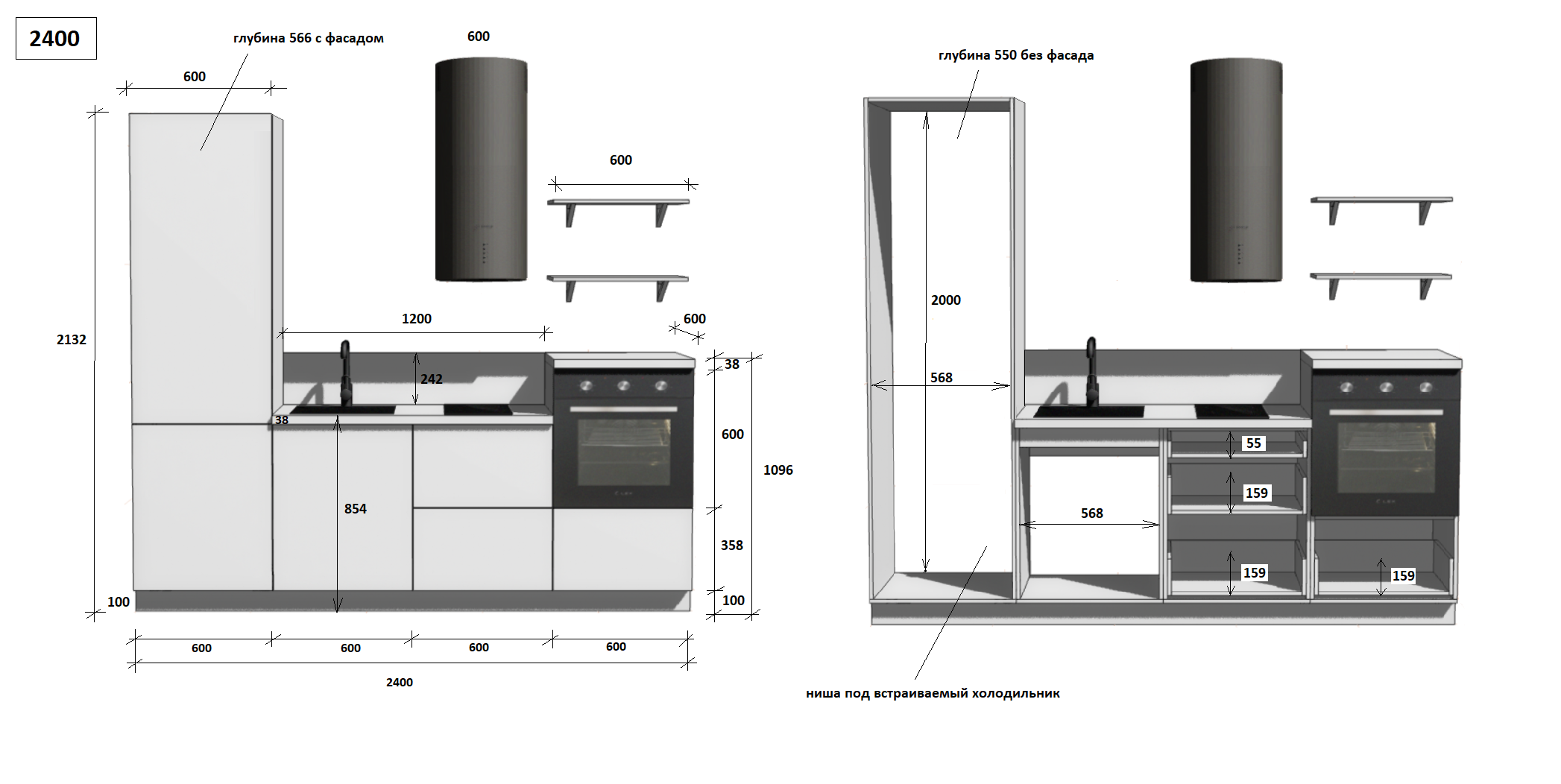 — Цельная столешница: без стыков и зазоров — больше гигиеничности и удобства в уборке.