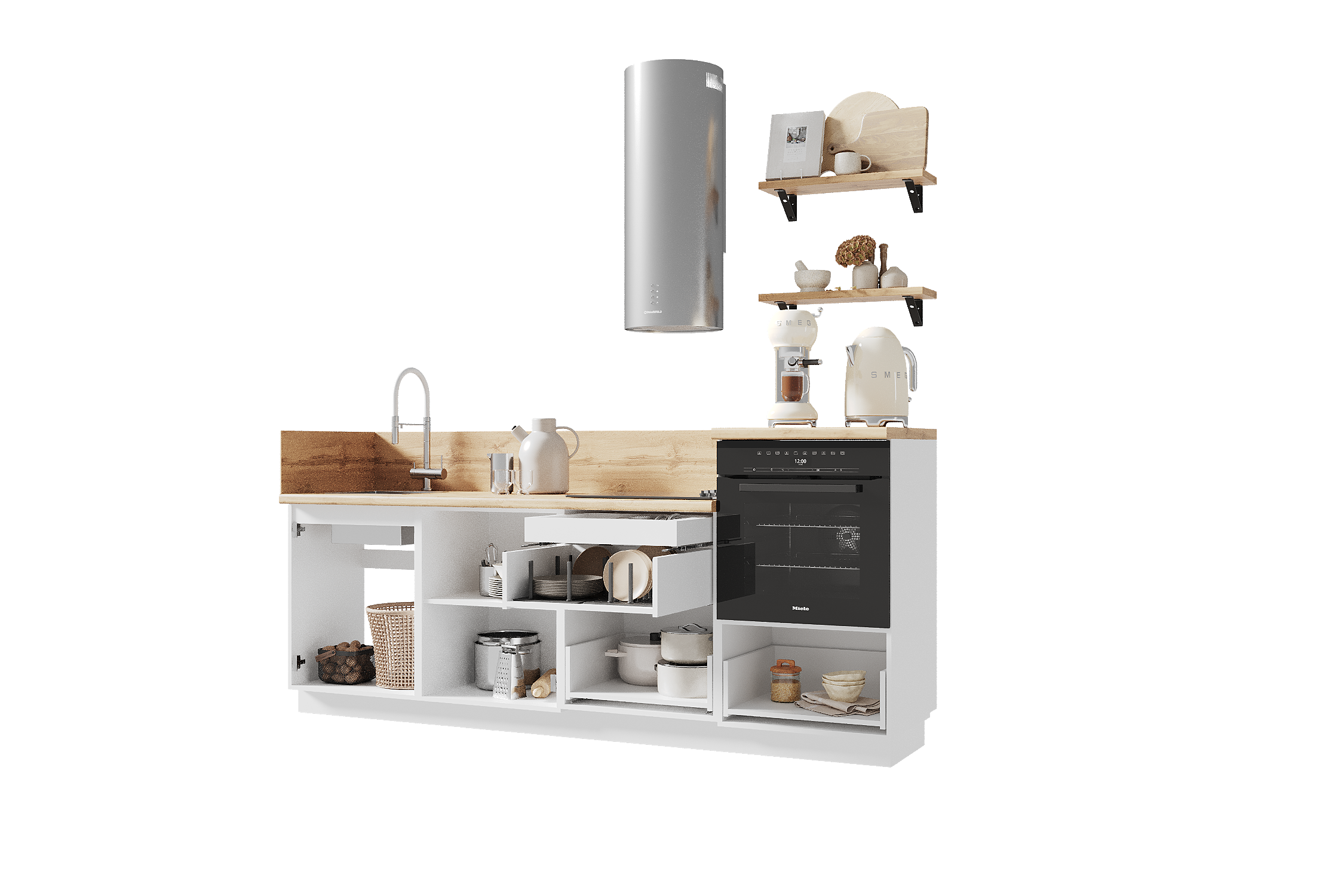 — Цельная столешница: без стыков и зазоров — больше гигиеничности и удобства в уборке.