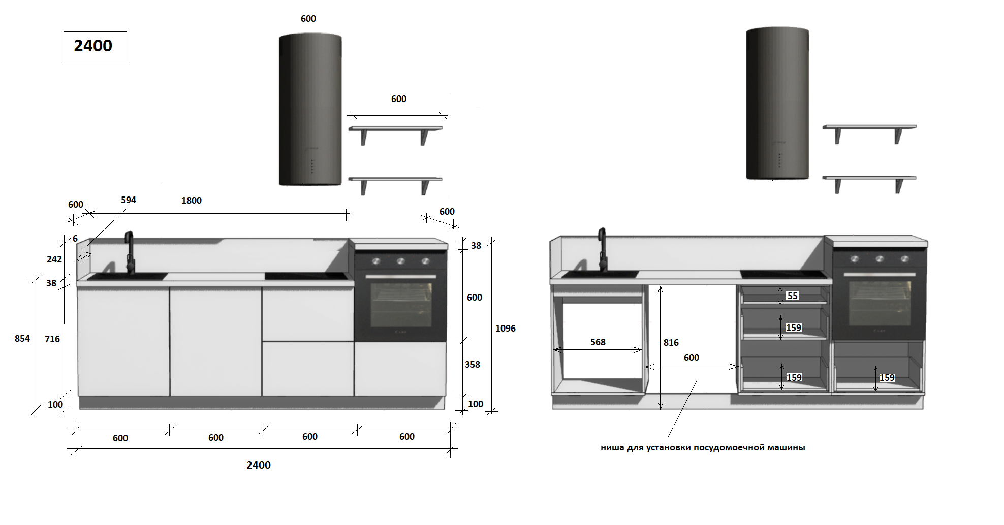 — Цельная столешница: без стыков и зазоров — больше гигиеничности и удобства в уборке.