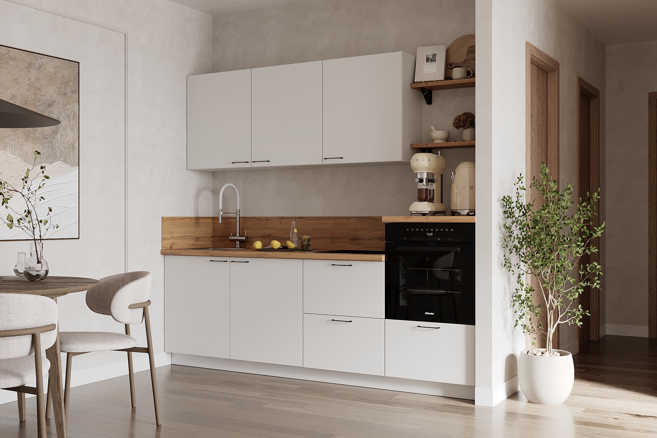 Кухня «Лизет» сочетает петербургскую элегантность и современную функциональность. Вдохновлённая эпохой Петра I и архитектурой Петербурга, она объединяет благородные цвета, тёплую древесную текстуру и лаконичные линии — для создания уютной и гармоничной кухни.