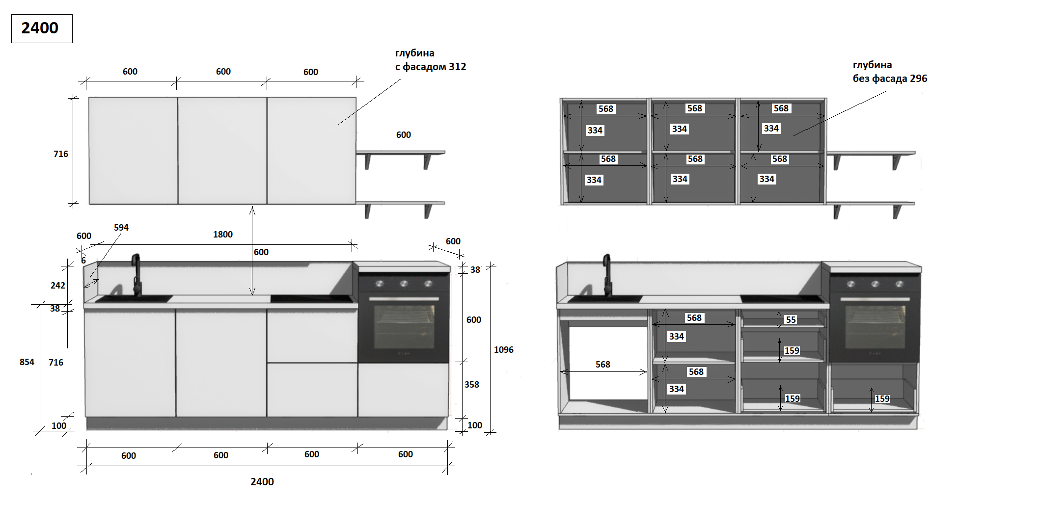 — Цельная столешница: без стыков и зазоров — больше гигиеничности и удобства в уборке.