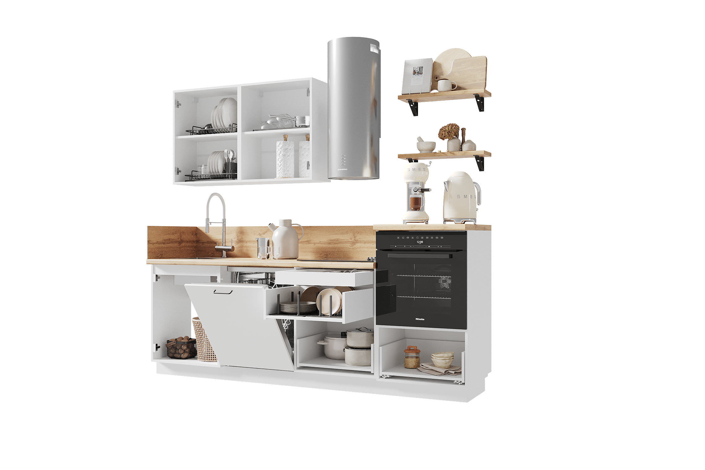 — Эстетика и зонирование: высокий модуль для духового шкафа делает интерьер аккуратным и современным.