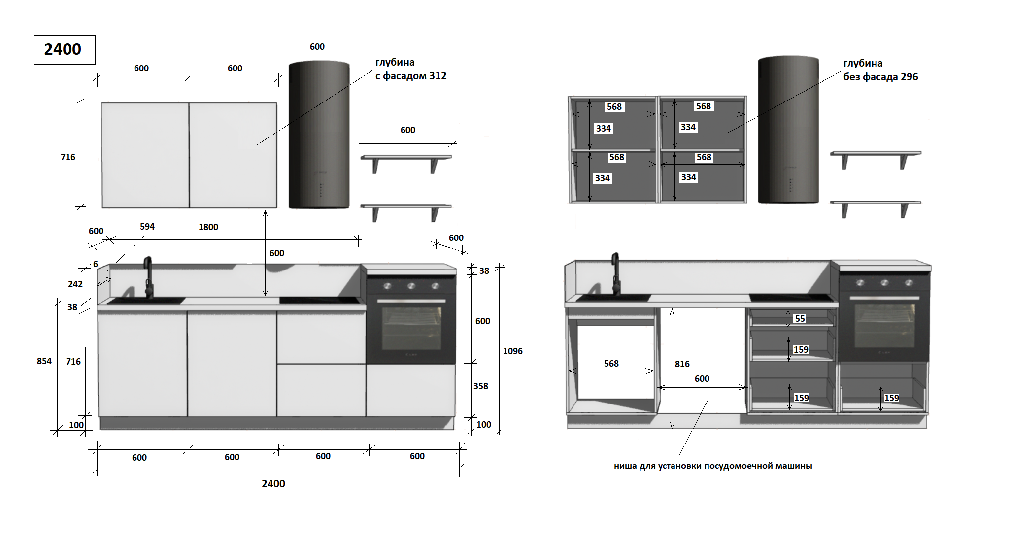 — Цельная столешница: без стыков и зазоров — больше гигиеничности и удобства в уборке.