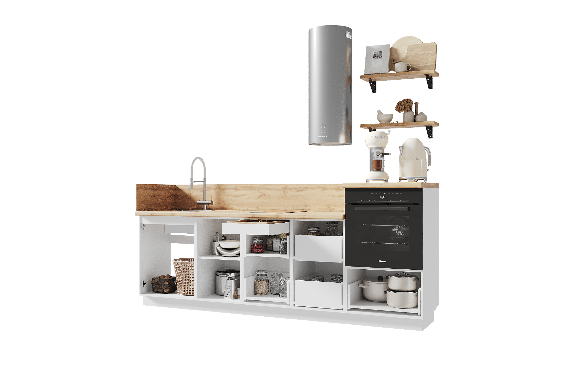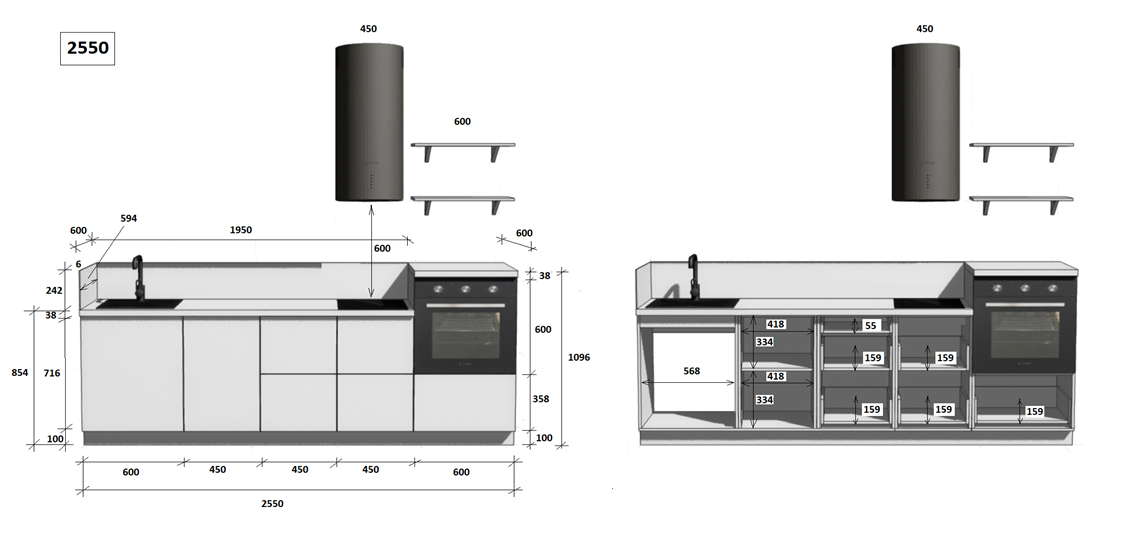 — Цельная столешница: без стыков и зазоров — больше гигиеничности и удобства в уборке.