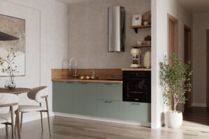 Кухня «Лизет» сочетает петербургскую элегантность и современную функциональность. Вдохновлённая эпохой Петра I и архитектурой Петербурга, она объединяет благородные цвета, тёплую древесную текстуру и лаконичные линии — для создания уютной и гармоничной кухни.