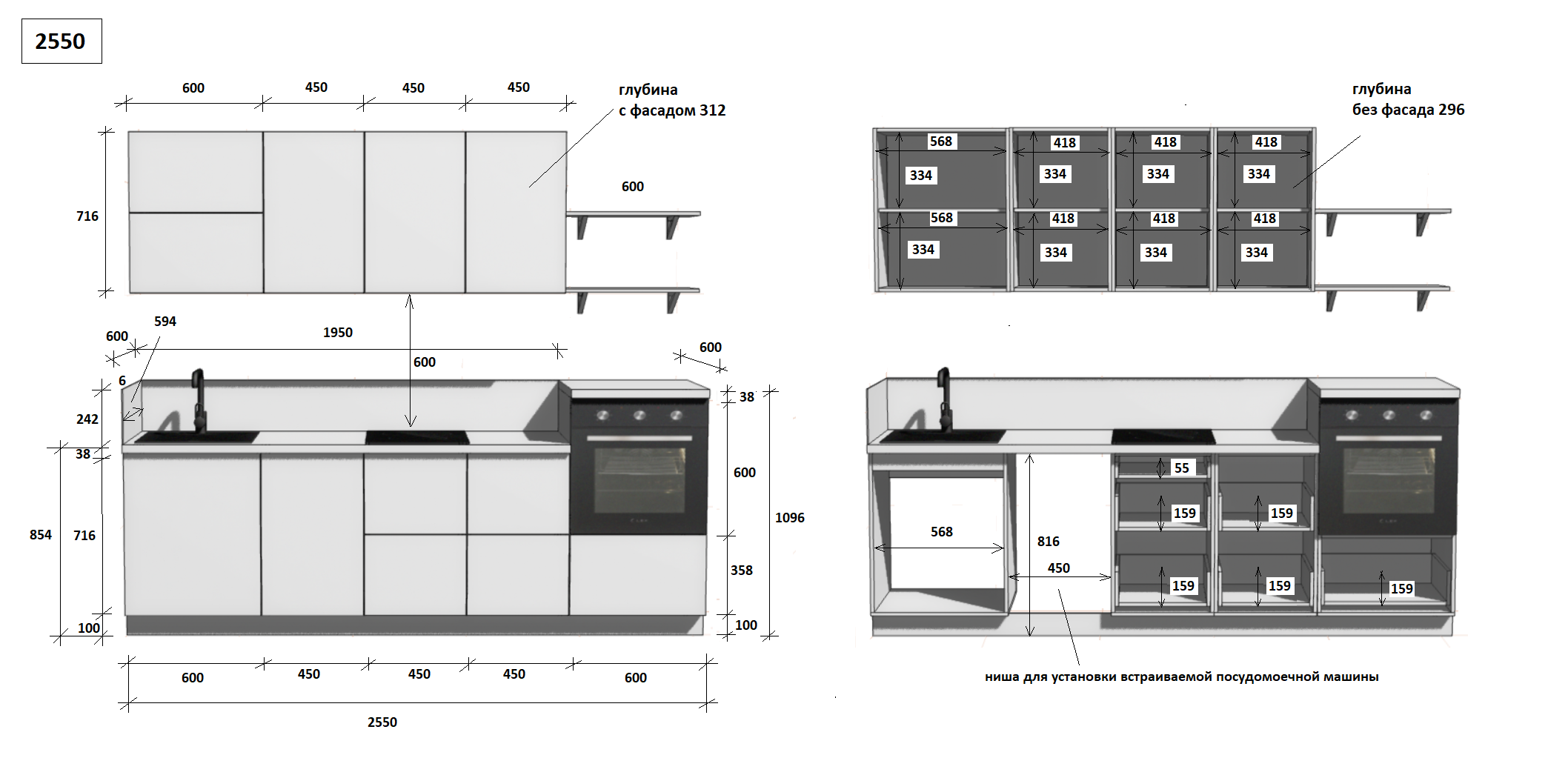 — Цельная столешница: без стыков и зазоров — больше гигиеничности и удобства в уборке.