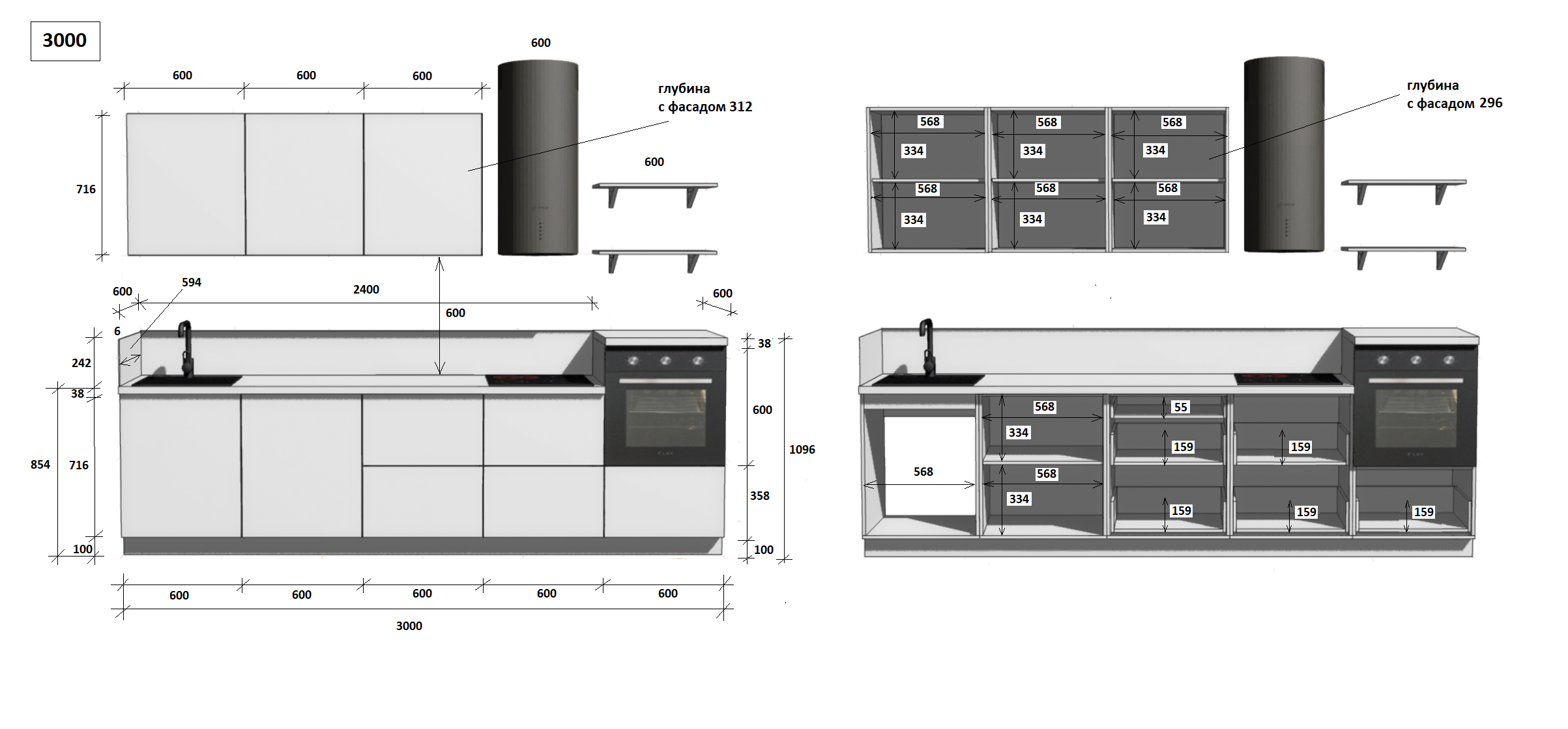 — Цельная столешница: без стыков и зазоров — больше гигиеничности и удобства в уборке.