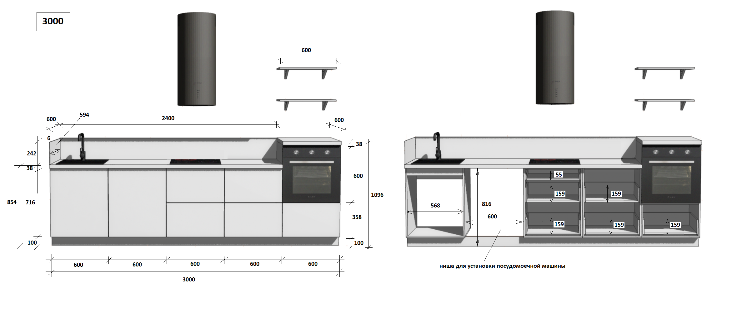 — Цельная столешница: без стыков и зазоров — больше гигиеничности и удобства в уборке.