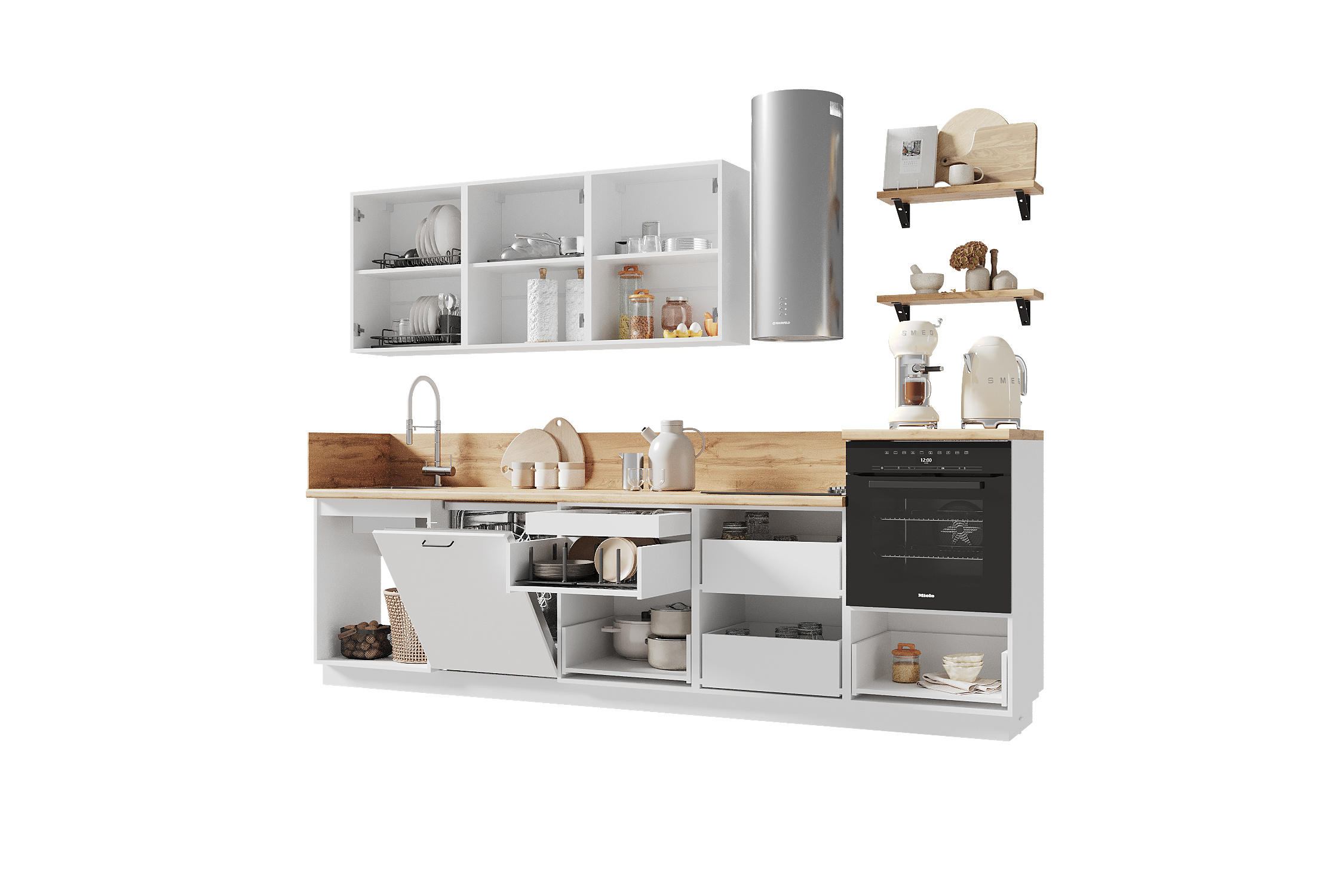 — Эстетика и зонирование: высокий модуль для духового шкафа делает интерьер аккуратным и современным.