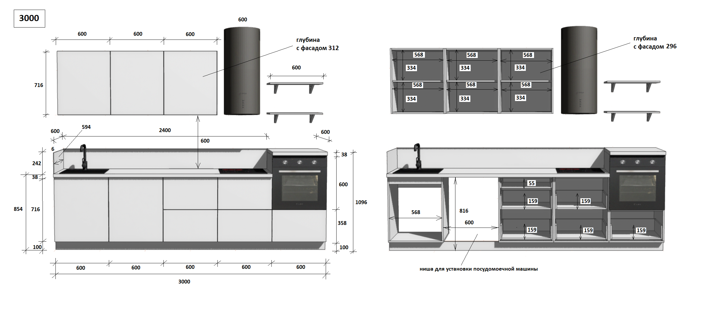 — Цельная столешница: без стыков и зазоров — больше гигиеничности и удобства в уборке.