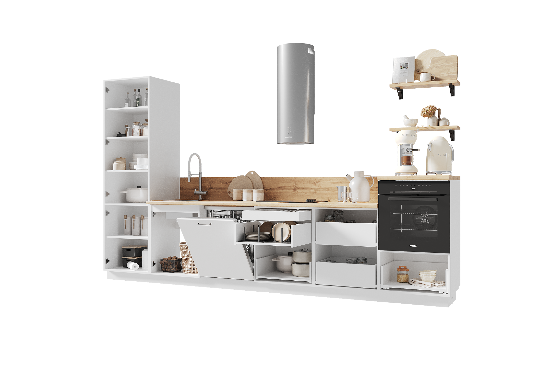 — Эстетика и зонирование: высокий модуль для духового шкафа делает интерьер аккуратным и современным.