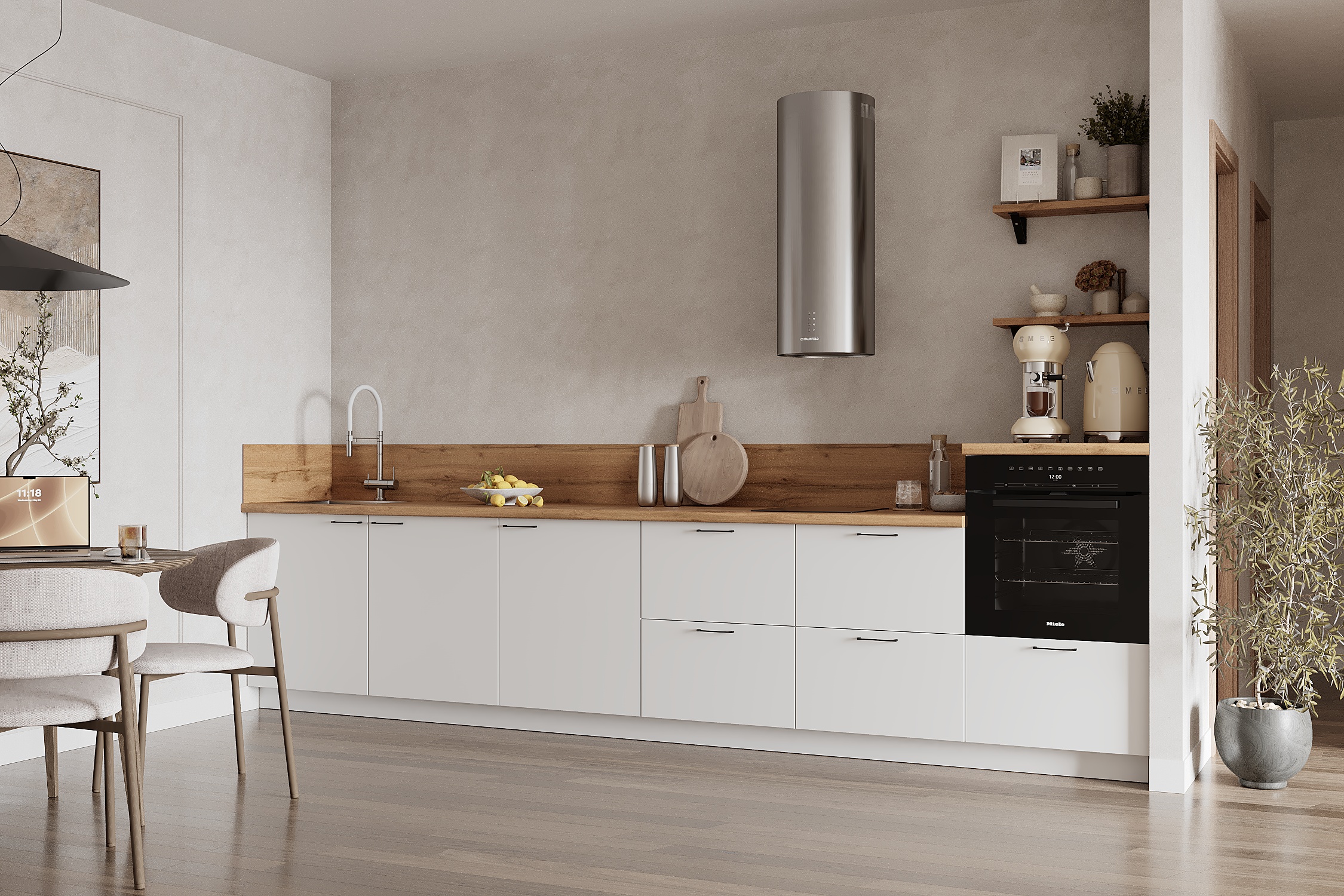 — Эстетика и зонирование: высокий модуль для духового шкафа делает интерьер аккуратным и современным.