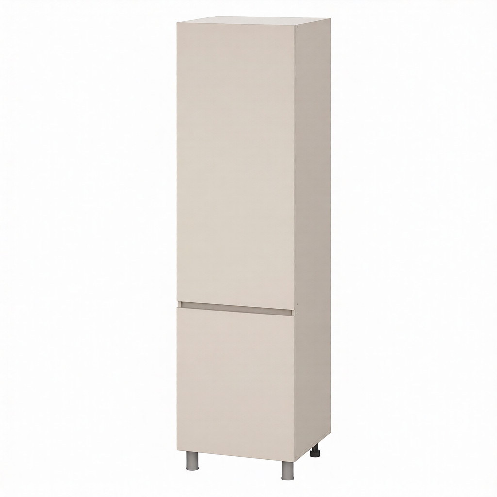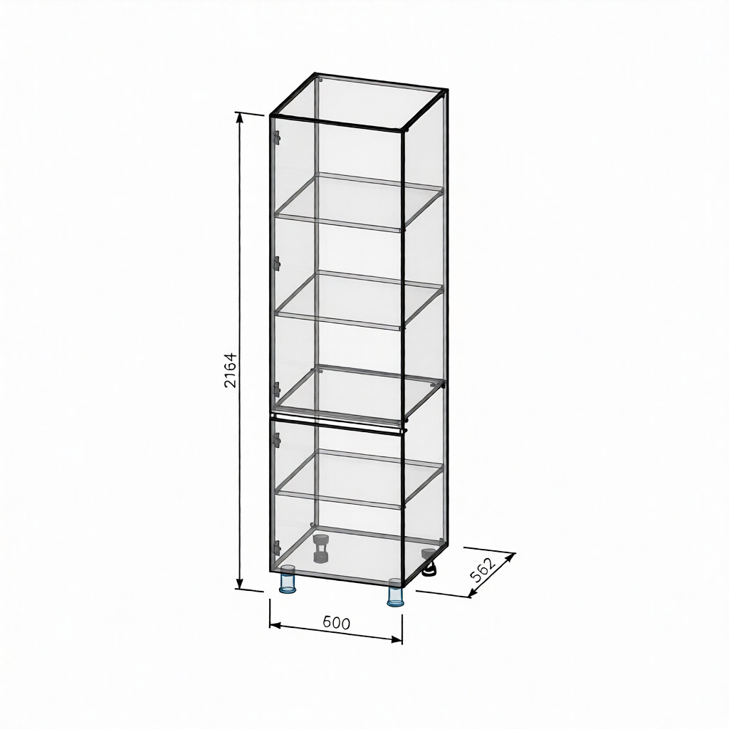 Кухонный Пенал глухой с двумя створками. В верхнем отсеке расположены две съемных полки, а в нижнем одна полка.