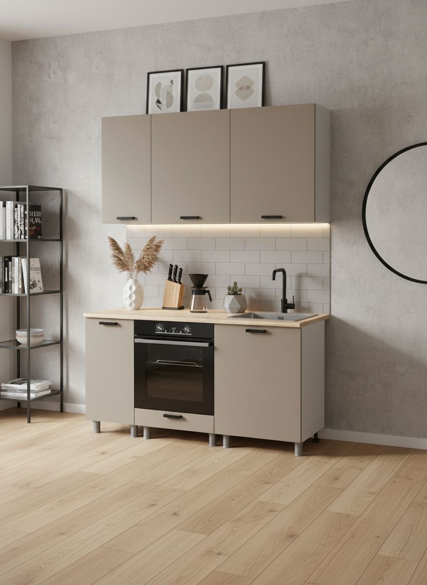 Материал устойчив к выцветанию и воздействию бытовой химии, прост в уходе и рассчитан на длительную эксплуатацию. Поверхность обладает повышенными гидрофобными свойствами, что делает кухню практичной и удобной для ежедневного использования.