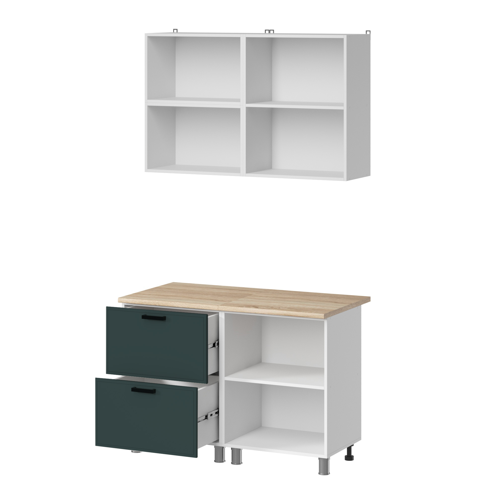 МК Аленушка 1,2м с ящ.в 2 Магнолия Изумруд,скоба черный,сонома