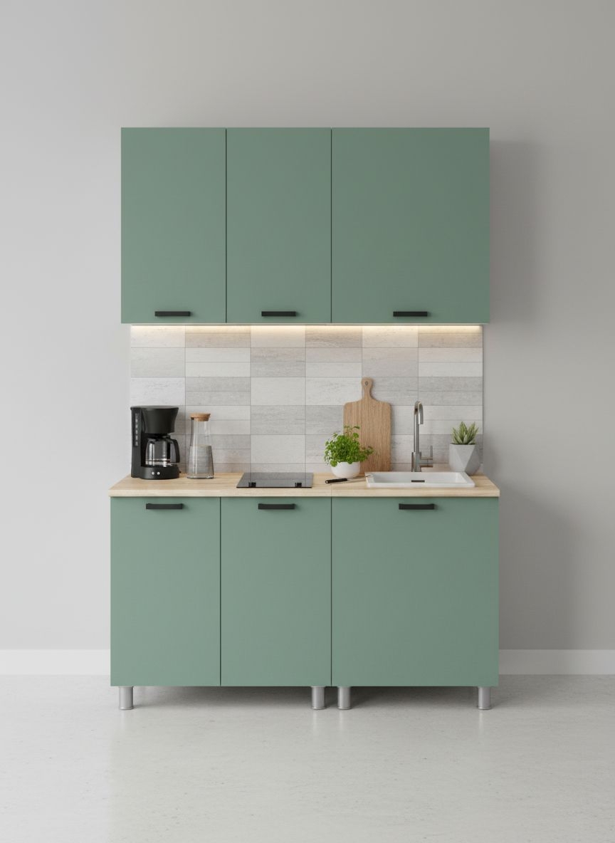 МК Аленушка 1,4м Орешник Матовая Мята,скоба черный,сонома (без столешницы) - Фирменный интернет-магазин мебели «Арника»