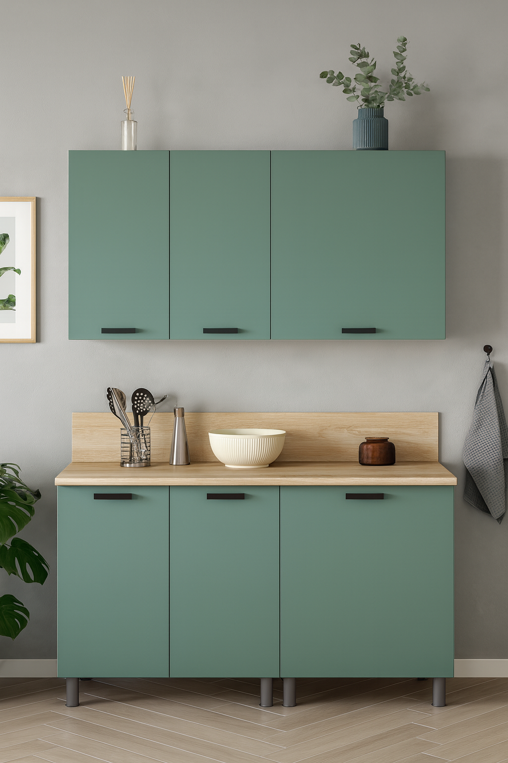 МК Аленушка 1,4м Орешник Матовая Мята,скоба черный,сонома - Фирменный интернет-магазин мебели «Арника»