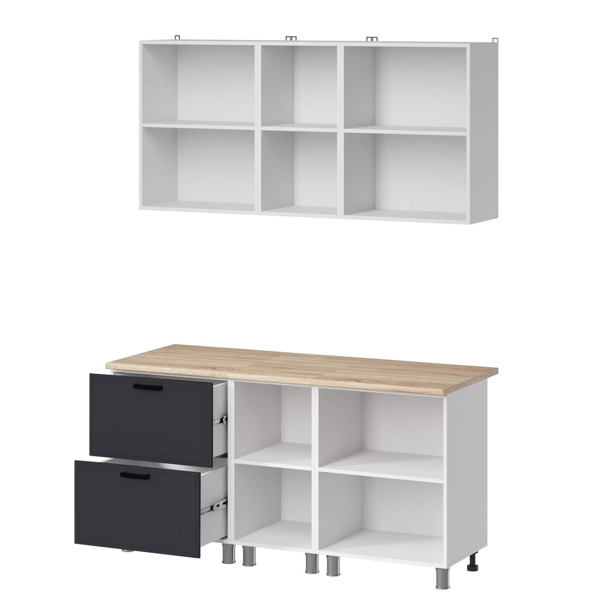 МК Аленушка 1,6м в.4 Магнолия Сталь,скоба черный,сонома - Фирменный интернет-магазин мебели «Арника»