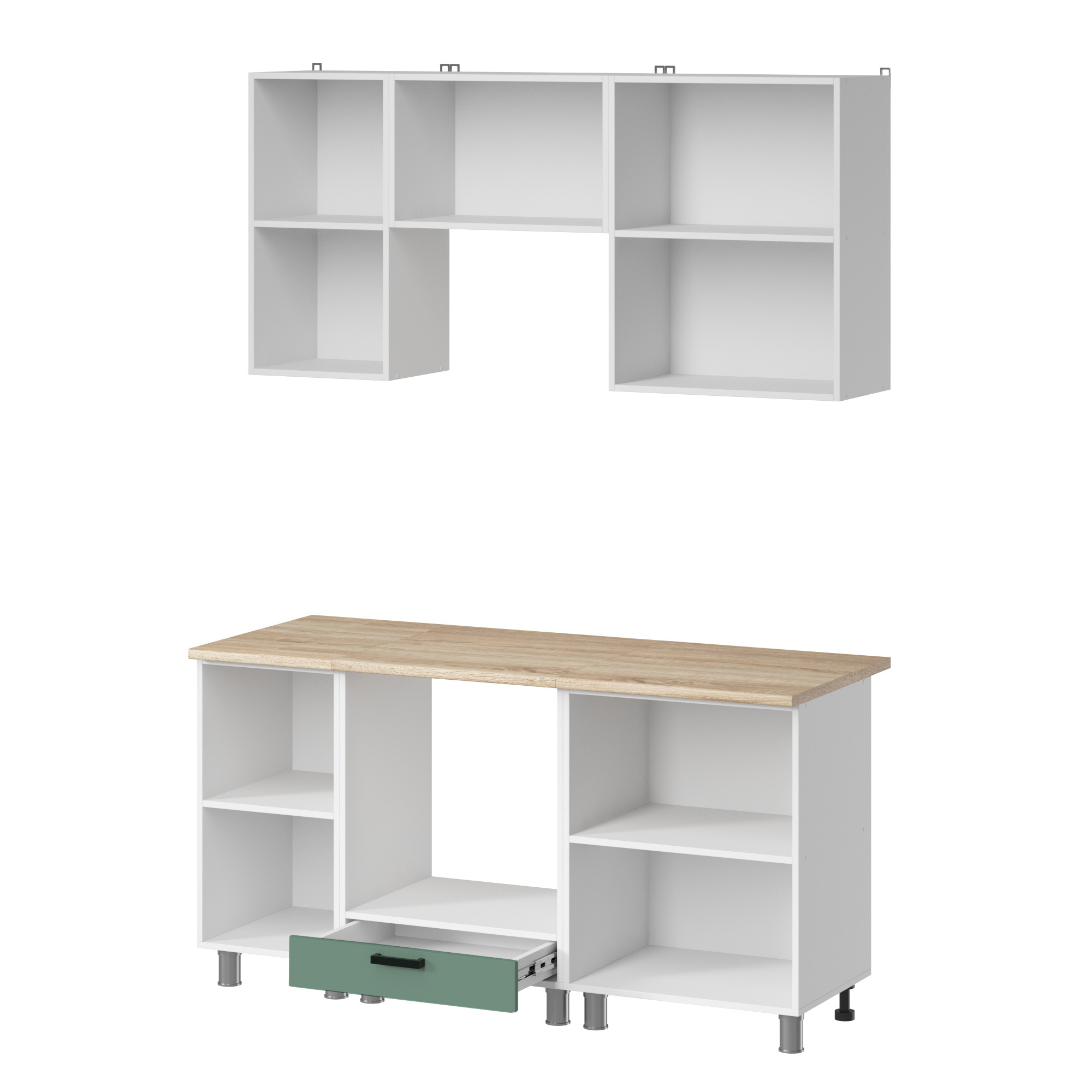 МК Аленушка 1,6м в.5 Орешник Матовая Мята,скоба черный,сонома (без столешницы)