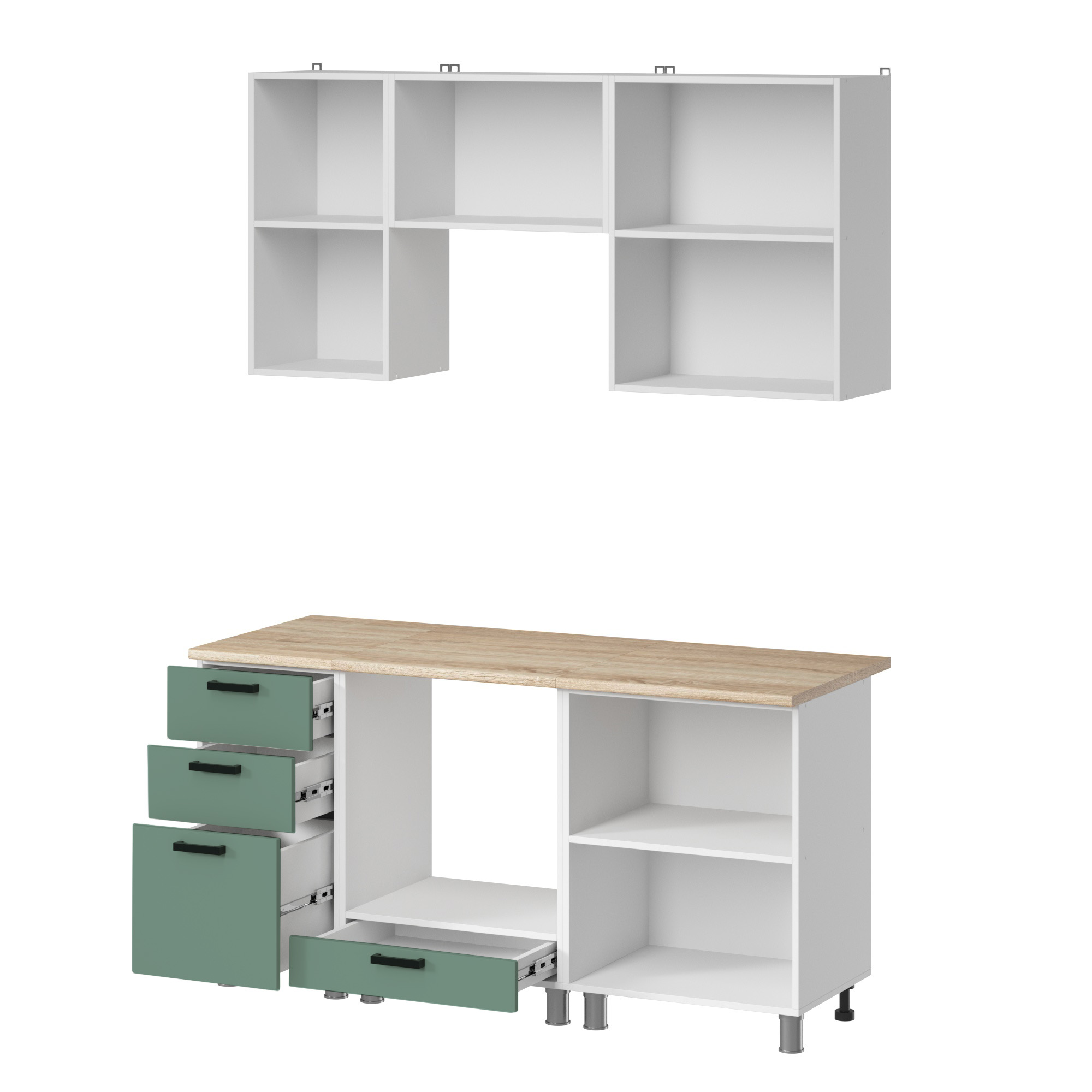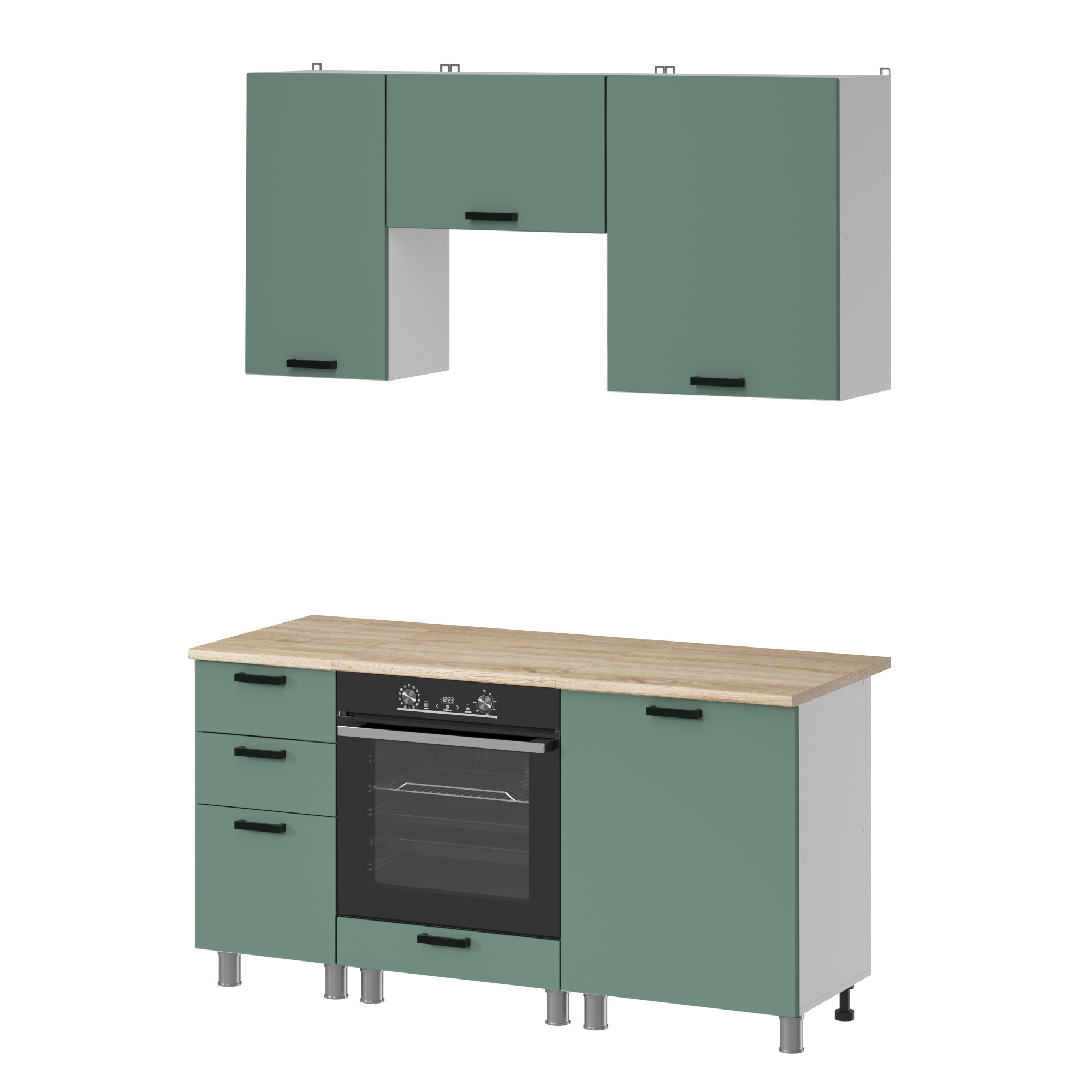 МК Аленушка 1,6м в.7 Орешник Матовая Мята,скоба черный,сонома - Фирменный интернет-магазин мебели «Арника»