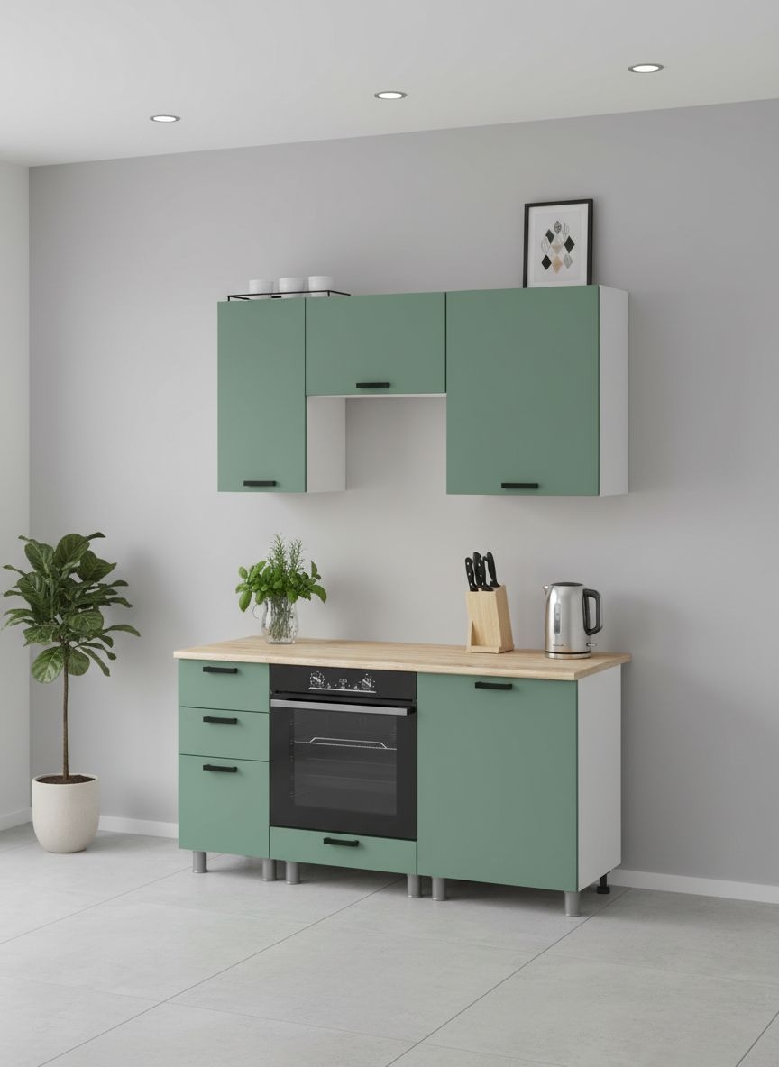 МК Аленушка 1,6м в.7 Орешник Матовая Мята,скоба черный,сонома (без столешницы)